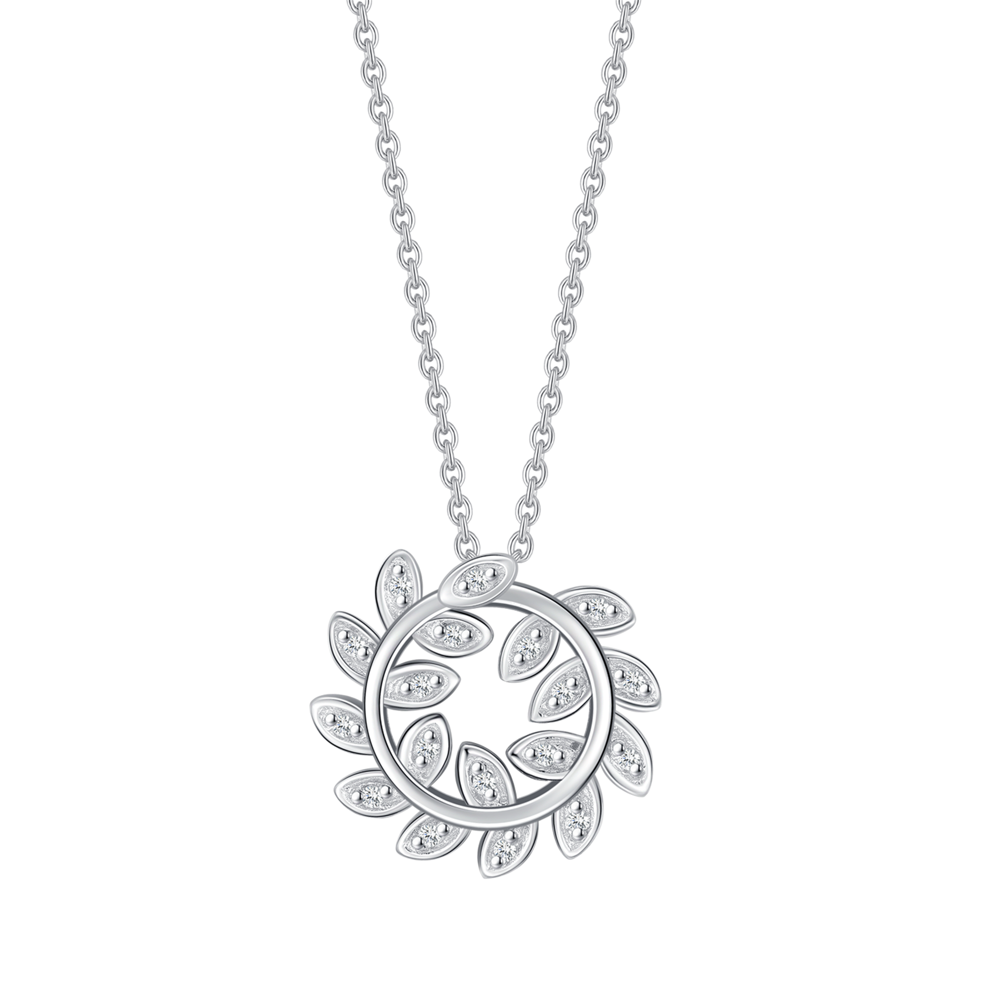 Sølv halskæde rhodineret cirkel og blade med syntetiske cubic zirconia.