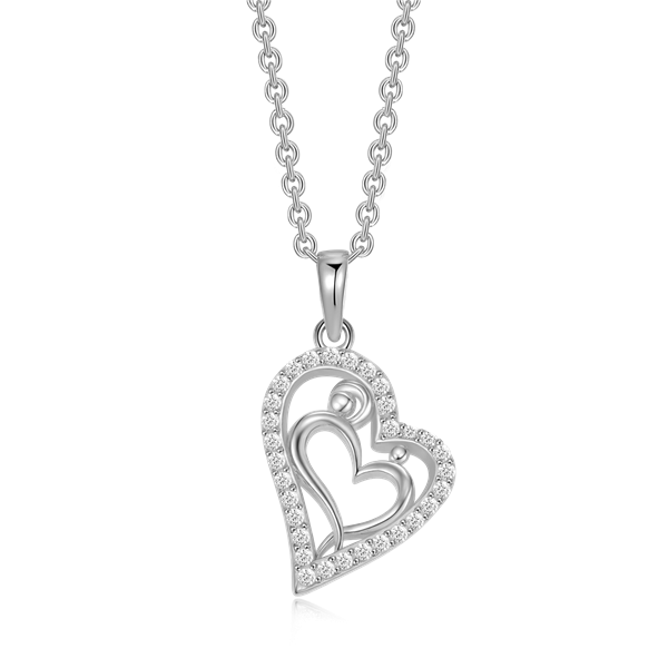 Sølv halskæde rhodineret skæv hjerte med syntetiske cubic zirconia.
