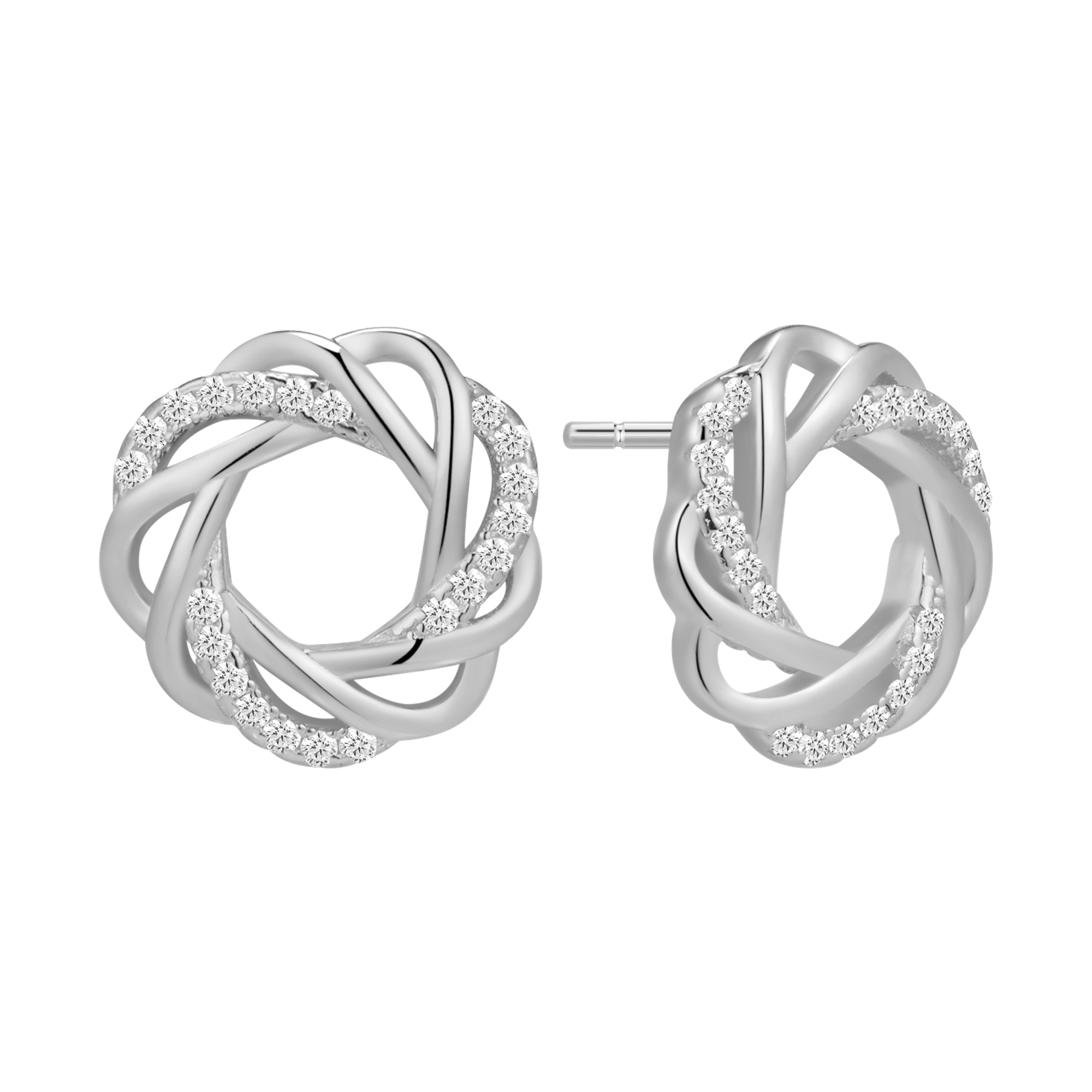 Sølv ørestikker rhodineret flettet cirkel med syntetiske cubic zirconia.