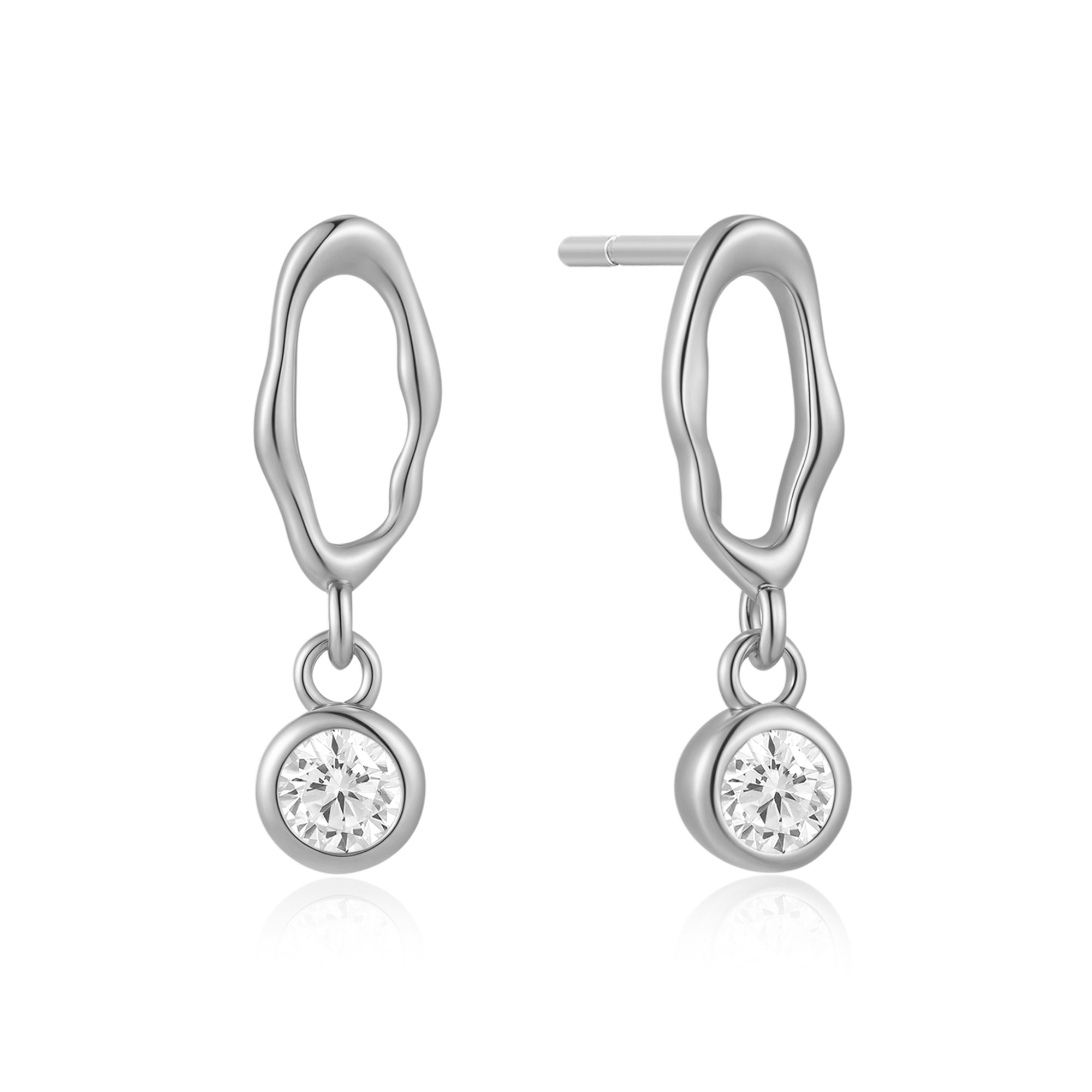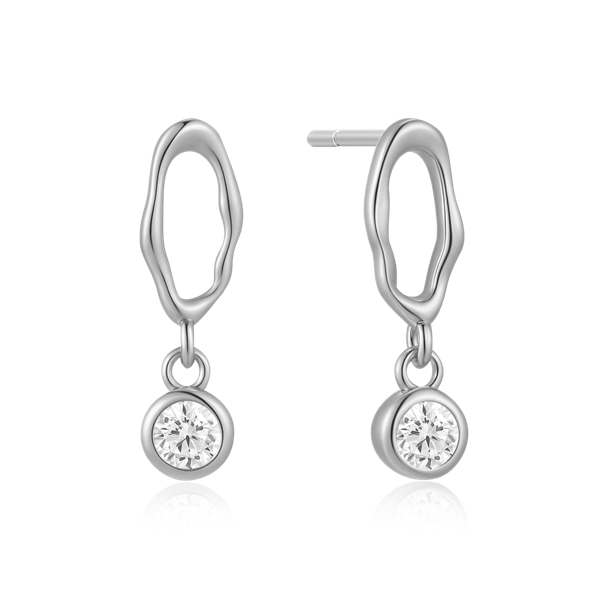 Sølv ørestikker rhodineret oval med syntetiske cubic zirconia som hænger.