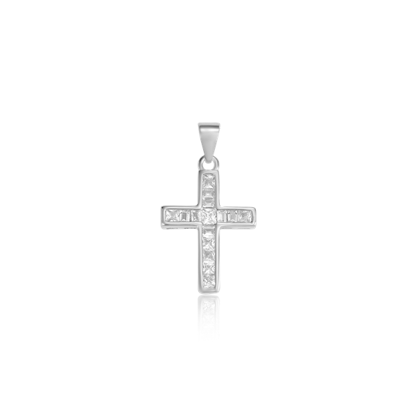 Sølv vedhæng rhodineret kors med syntetiske cubic zirconia.