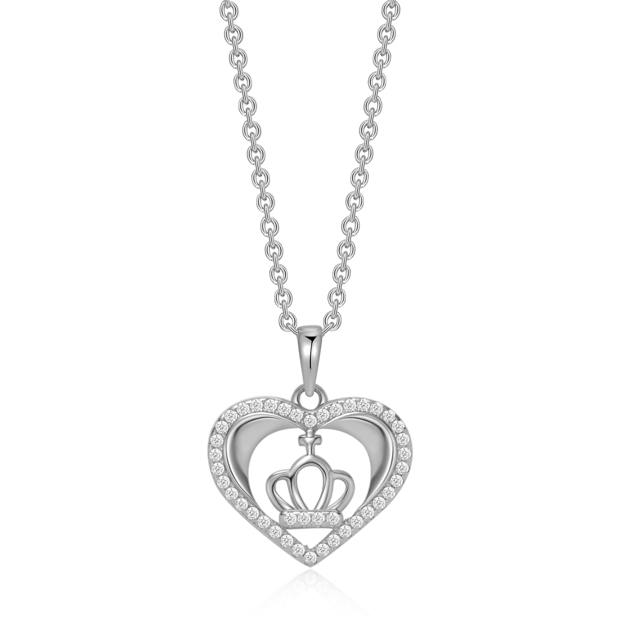 Sølv halskæde rhodineret hjerte med krone og syntetiske cubic zirconia.