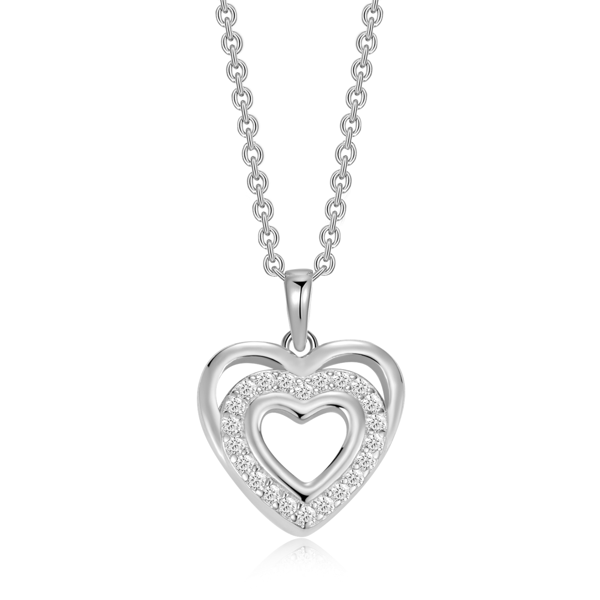 Sølv halskæde rhodineret 3 hjerter med syntetiske cubic zirconia.