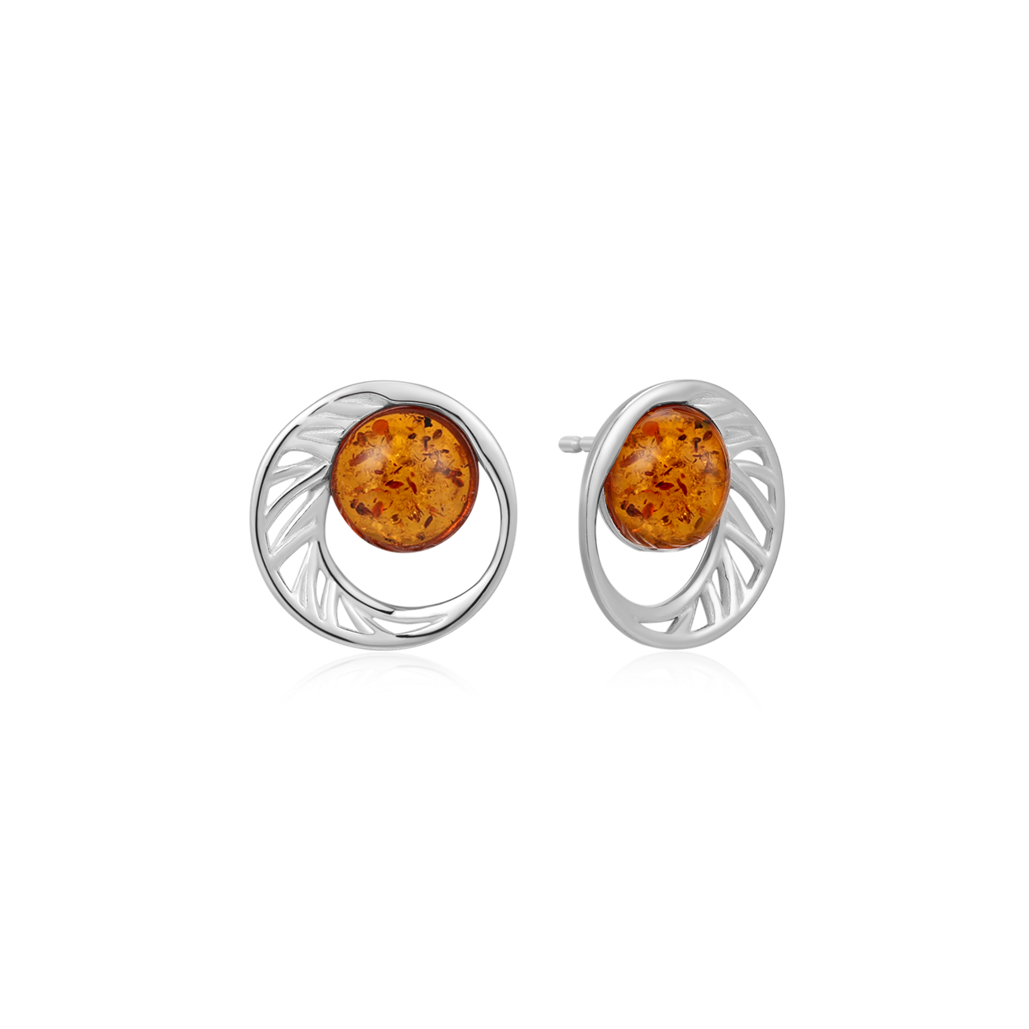 Sølv ørestikker rhodineret cirkel med mønstre og rav i midten., fra Støvring Design