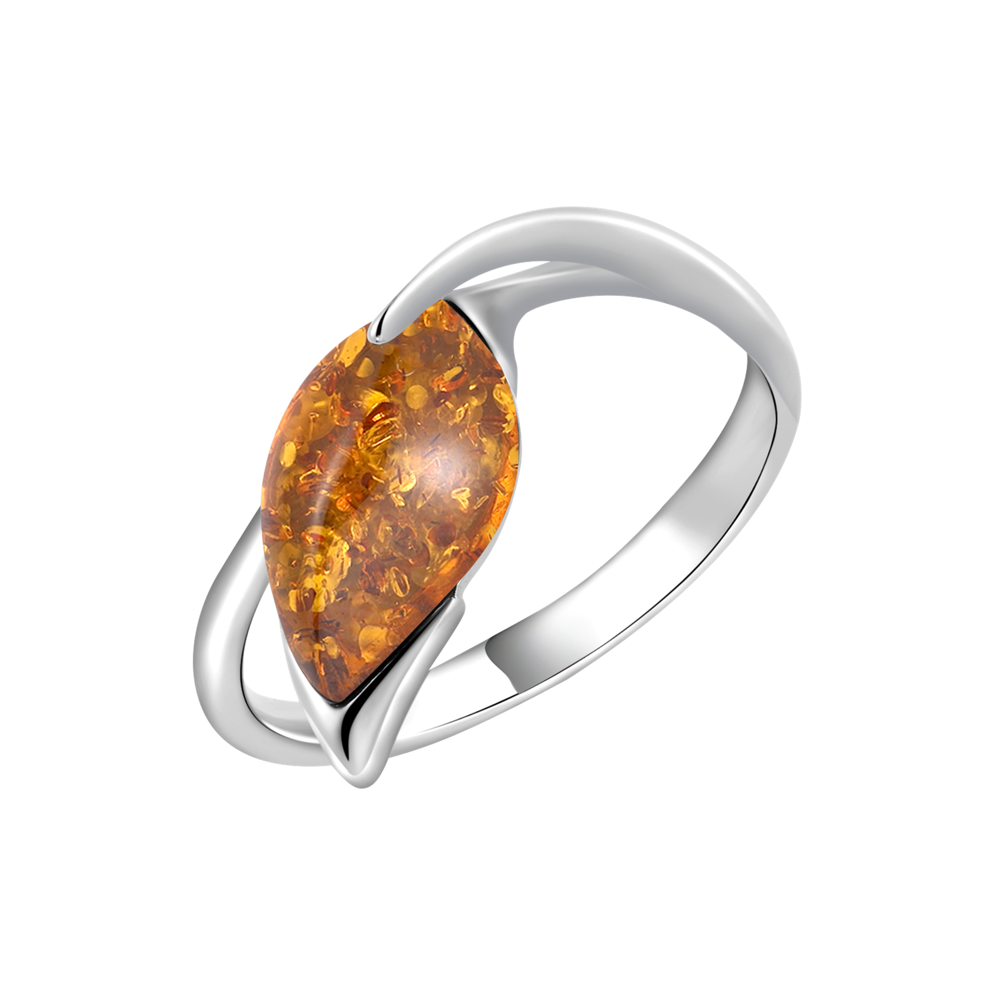 Sølv ring rhodineret dråbe med rav., fra Støvring Design