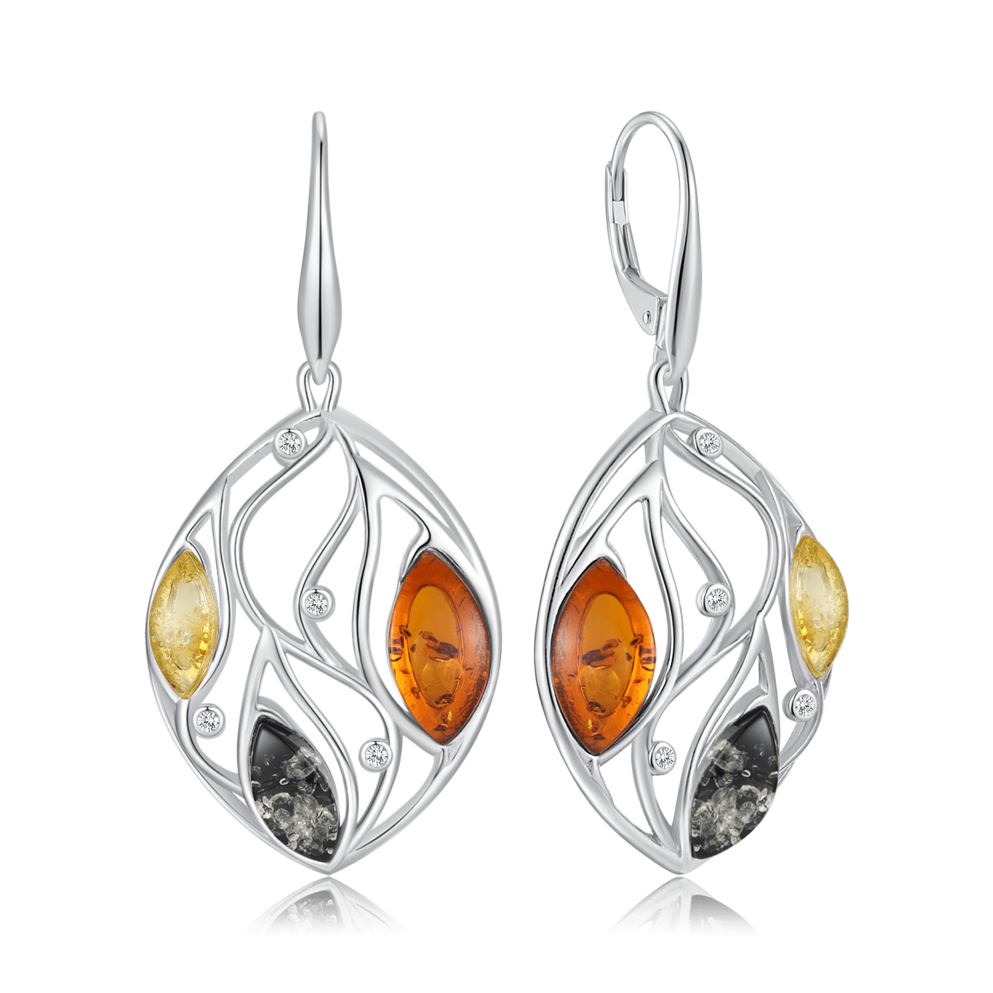 Sølv ørehænger rhodineret dråbe med 3 forskellige rav - Lemon,rav, sort agat og syntetiske cubic zirconia., fra Støvring Design