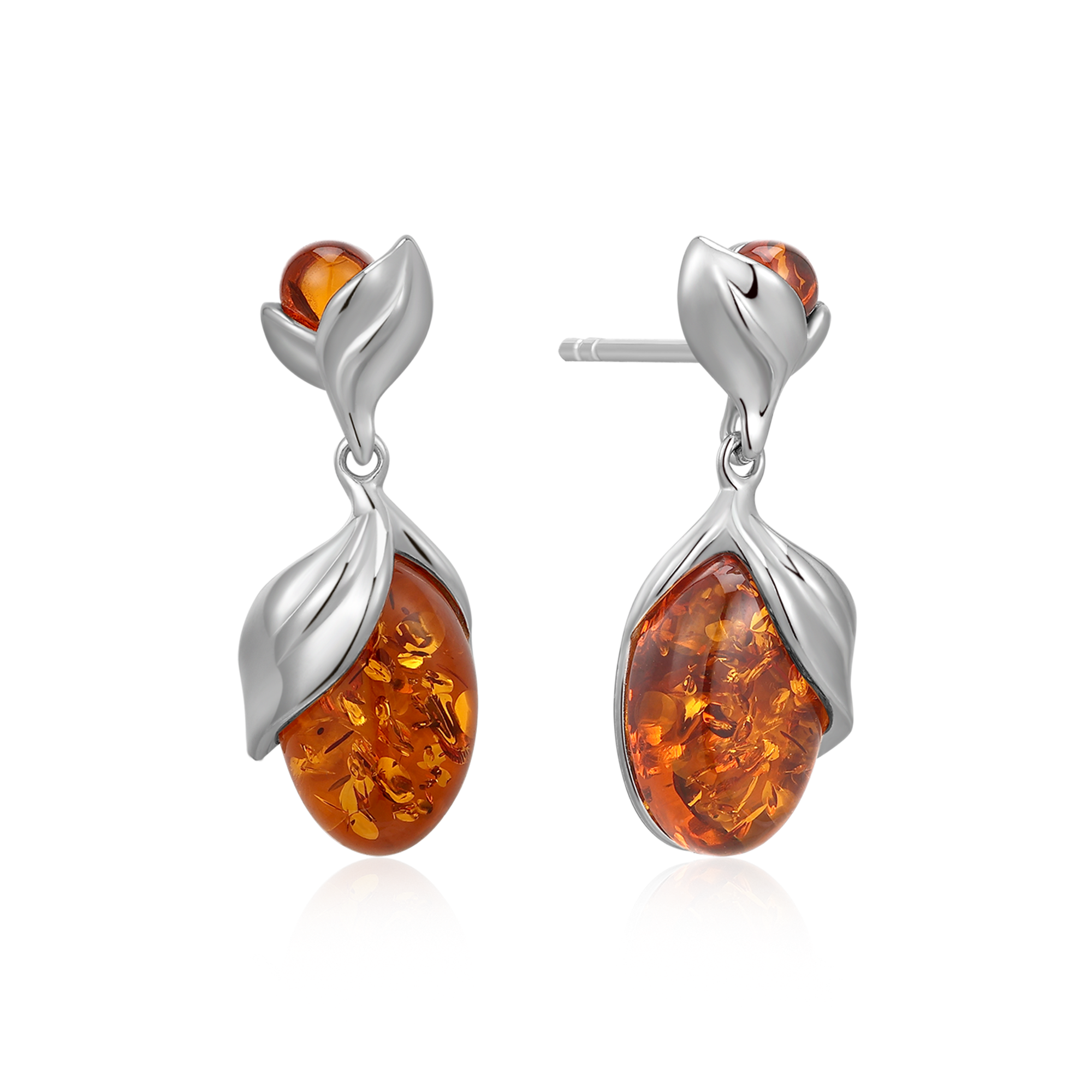 Sølv ørehænger rhodineret dråbe med blade oven på., fra Støvring Design