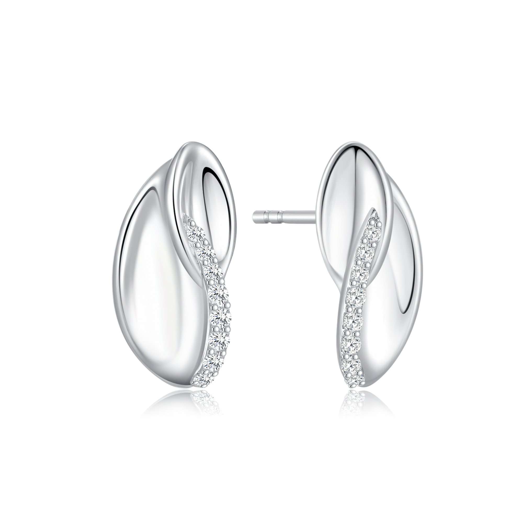 Sølv ørestikker rhodineret dobbelt blade med syntetiske cubic zirconia.