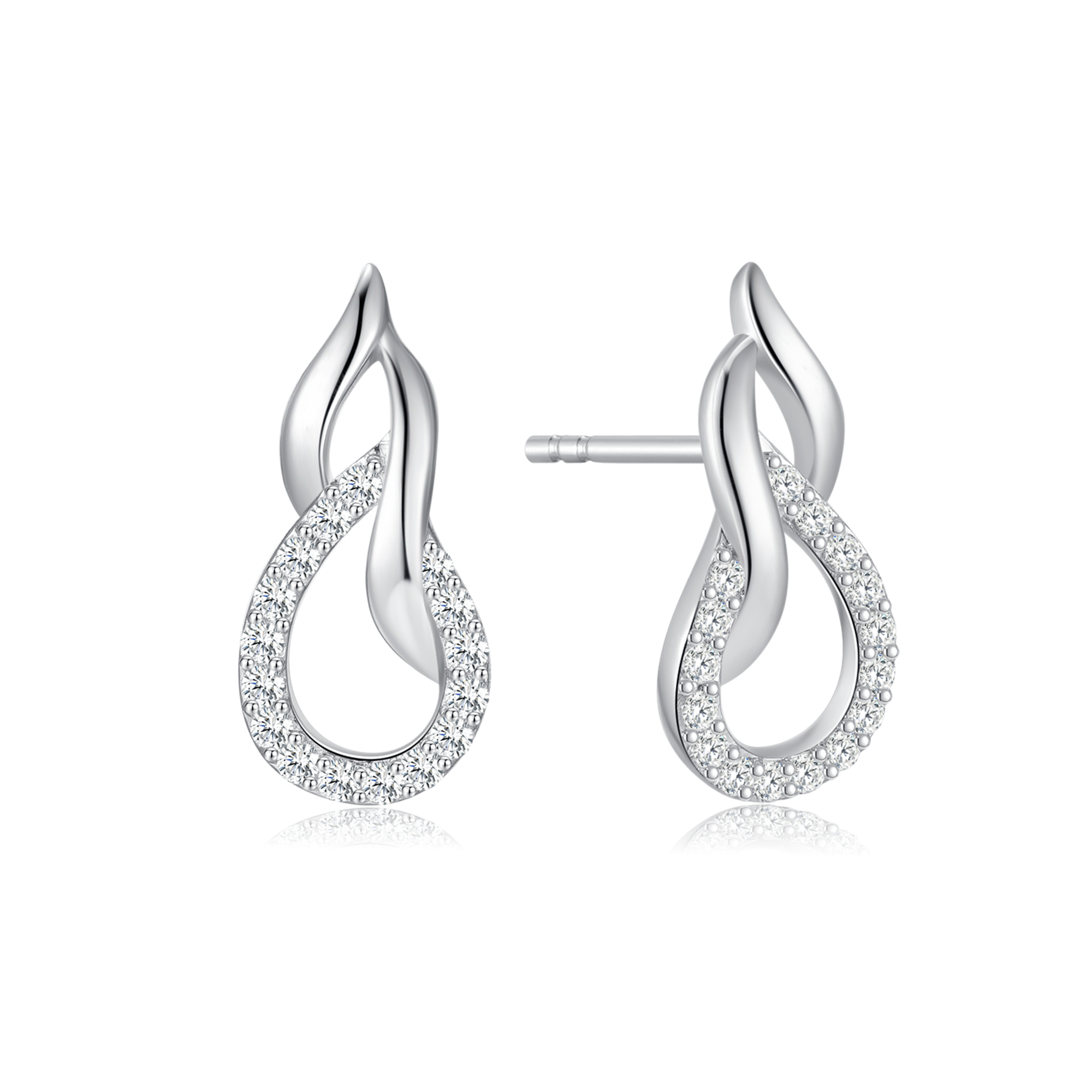 Sølv ørestikker rhodineret flettet dråbe med syntetisk cubic zirconia.
