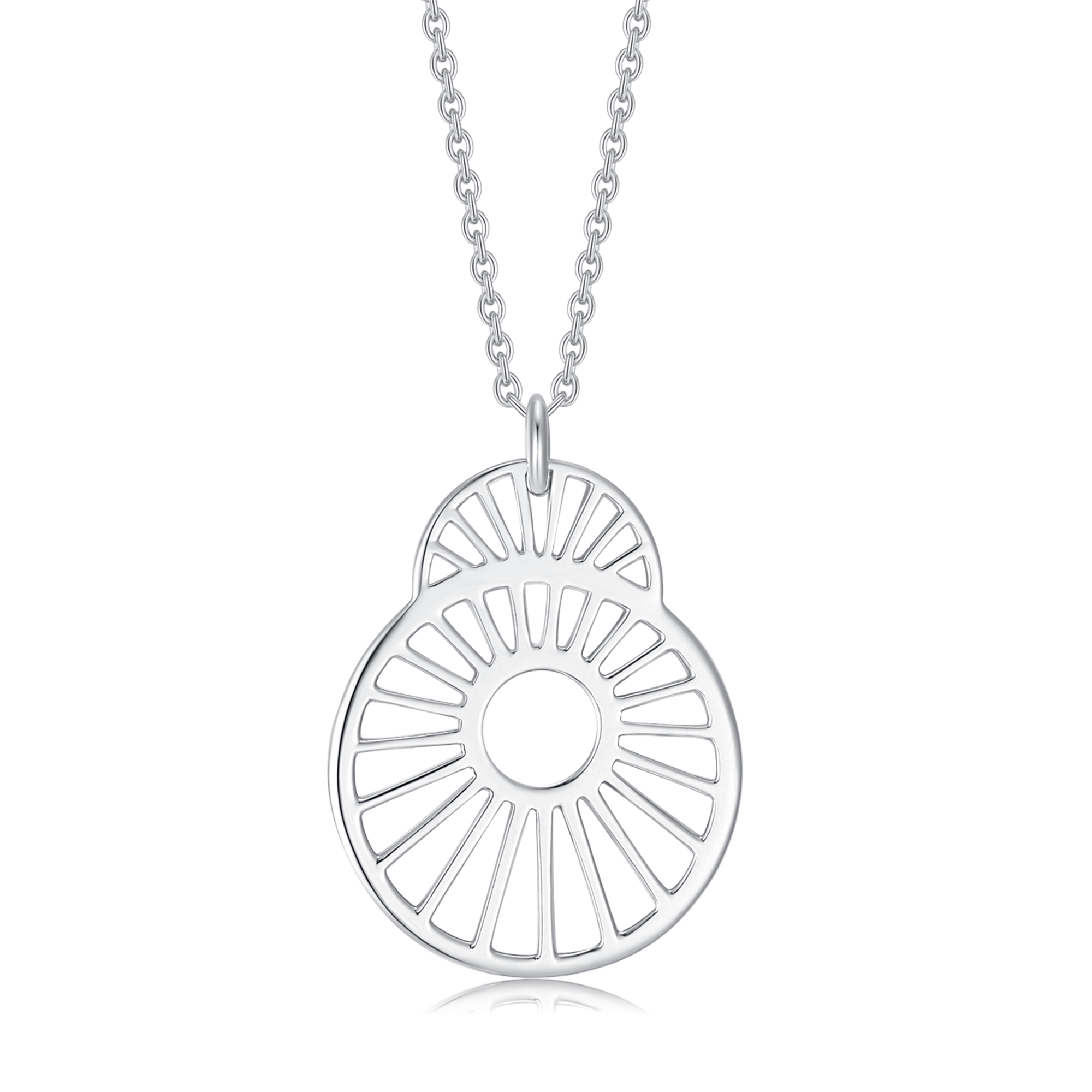 Sølv halskæde rhodineret cirkel med streg og mønster.