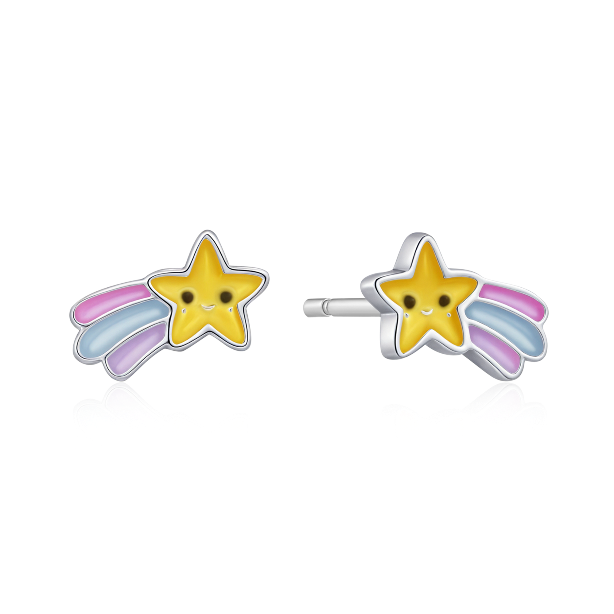 Sølv ørestikker stjerne i guld og sort øjne med pink,turkis grøn og lilla blyfri emalje.
