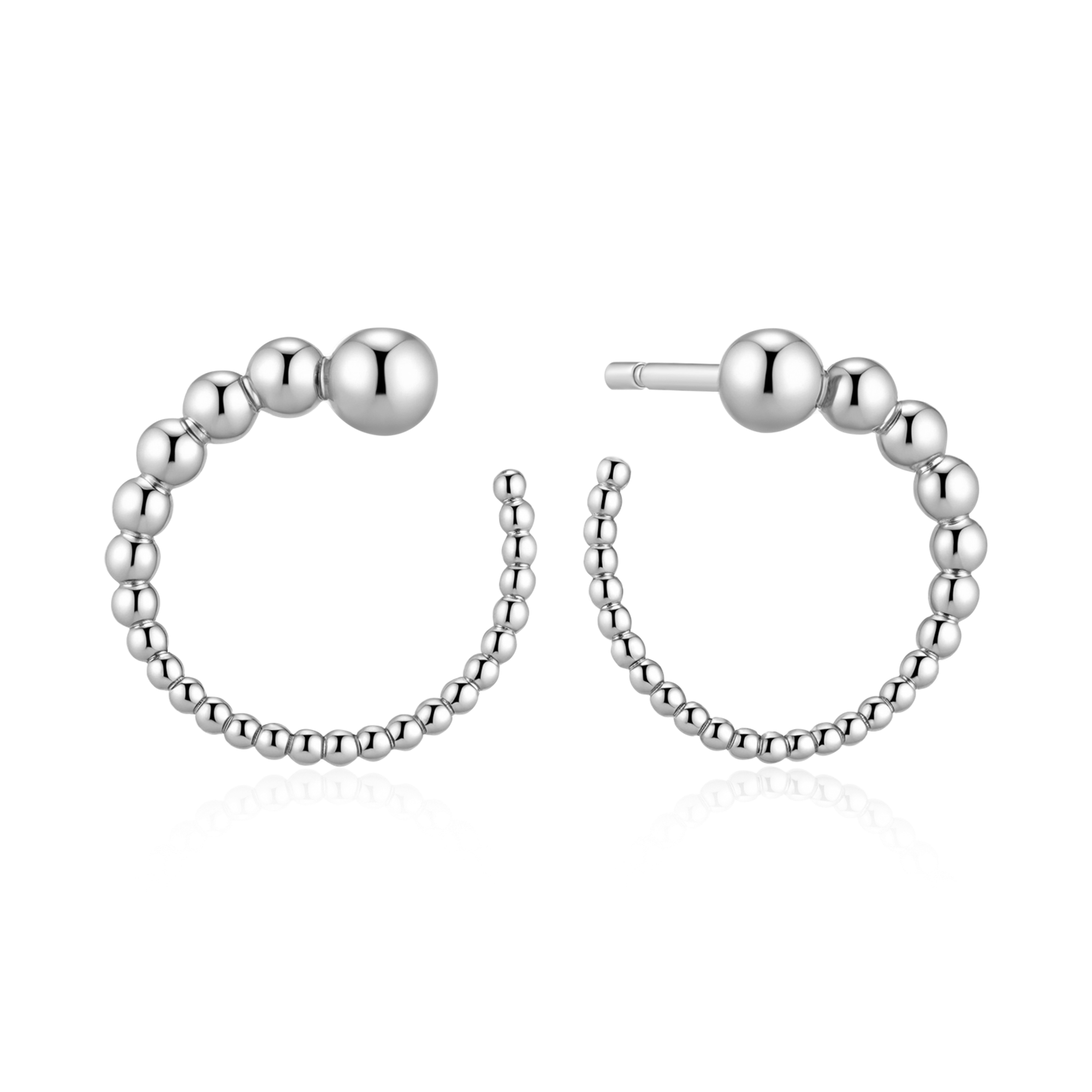 Sølv ørestikker rhodineret åben cirkel af kugler.