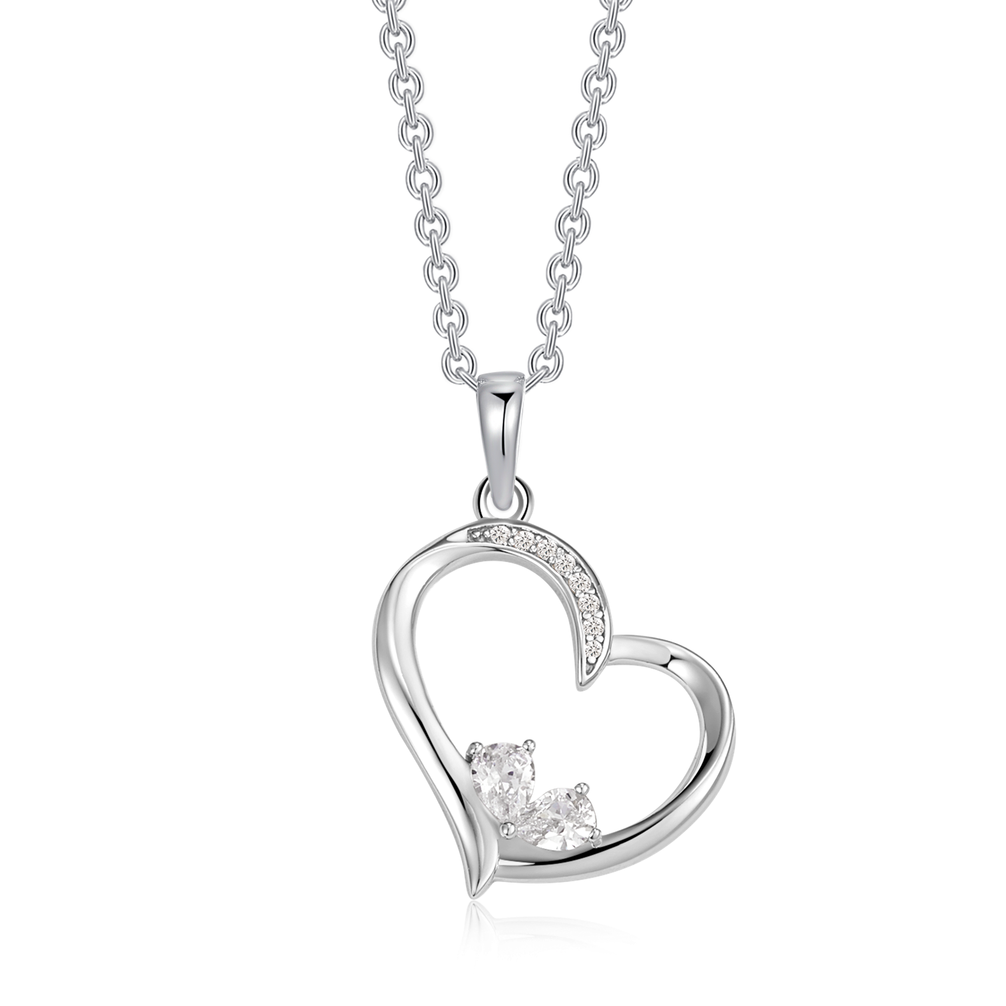 Sølv halskæde rhodineret skæv hjerte med syntetiske cubic zirconia.