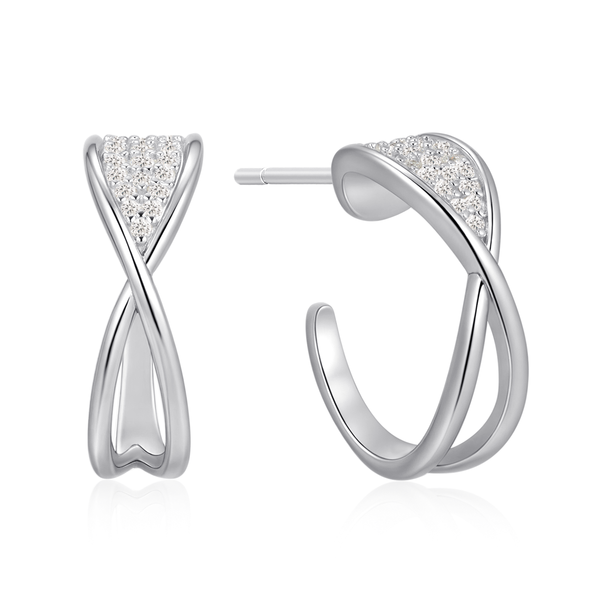 Sølv ørestikker rhodineret halv creol med evighedstegn og syntetiske cubic zirconia. "Infinity"