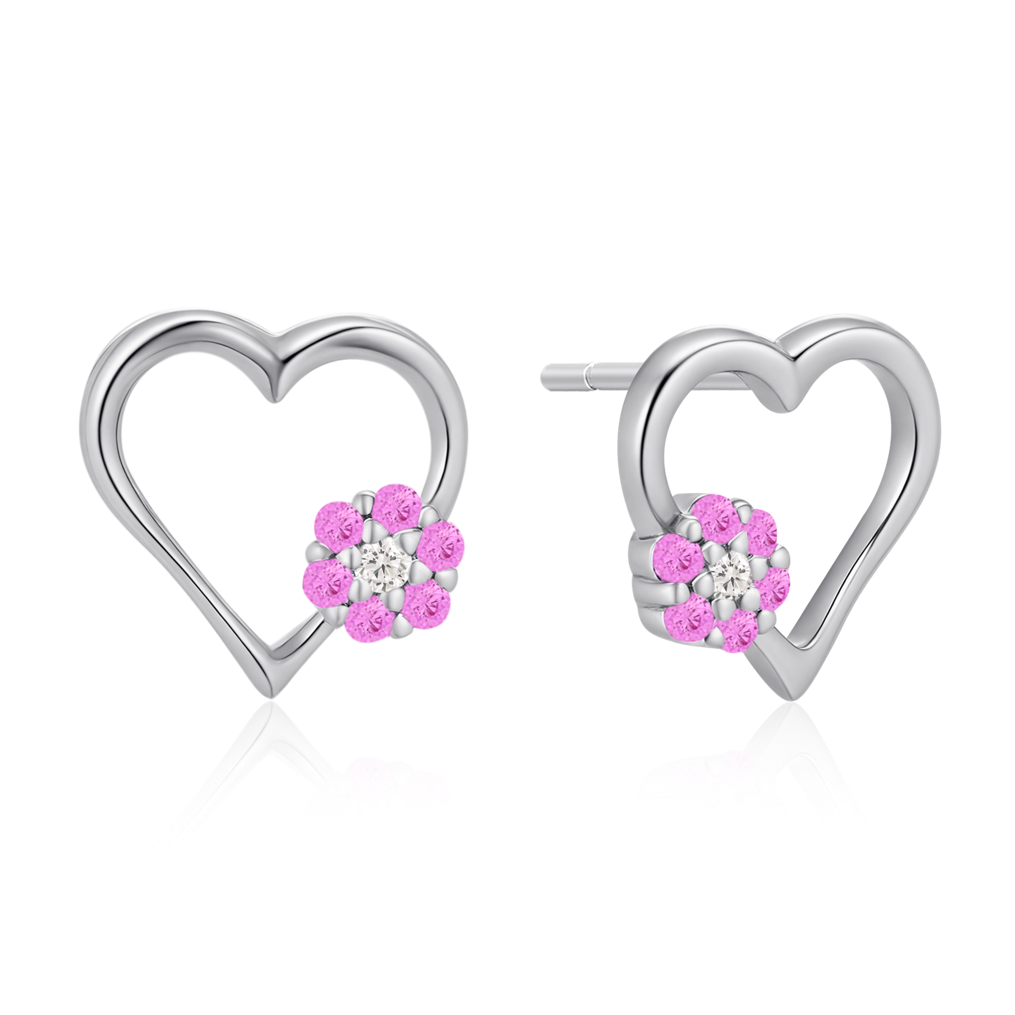 Sølv ørestikker rhodineret hjerte med synt. rubin blomst og en syntetisk cubic zirconia.