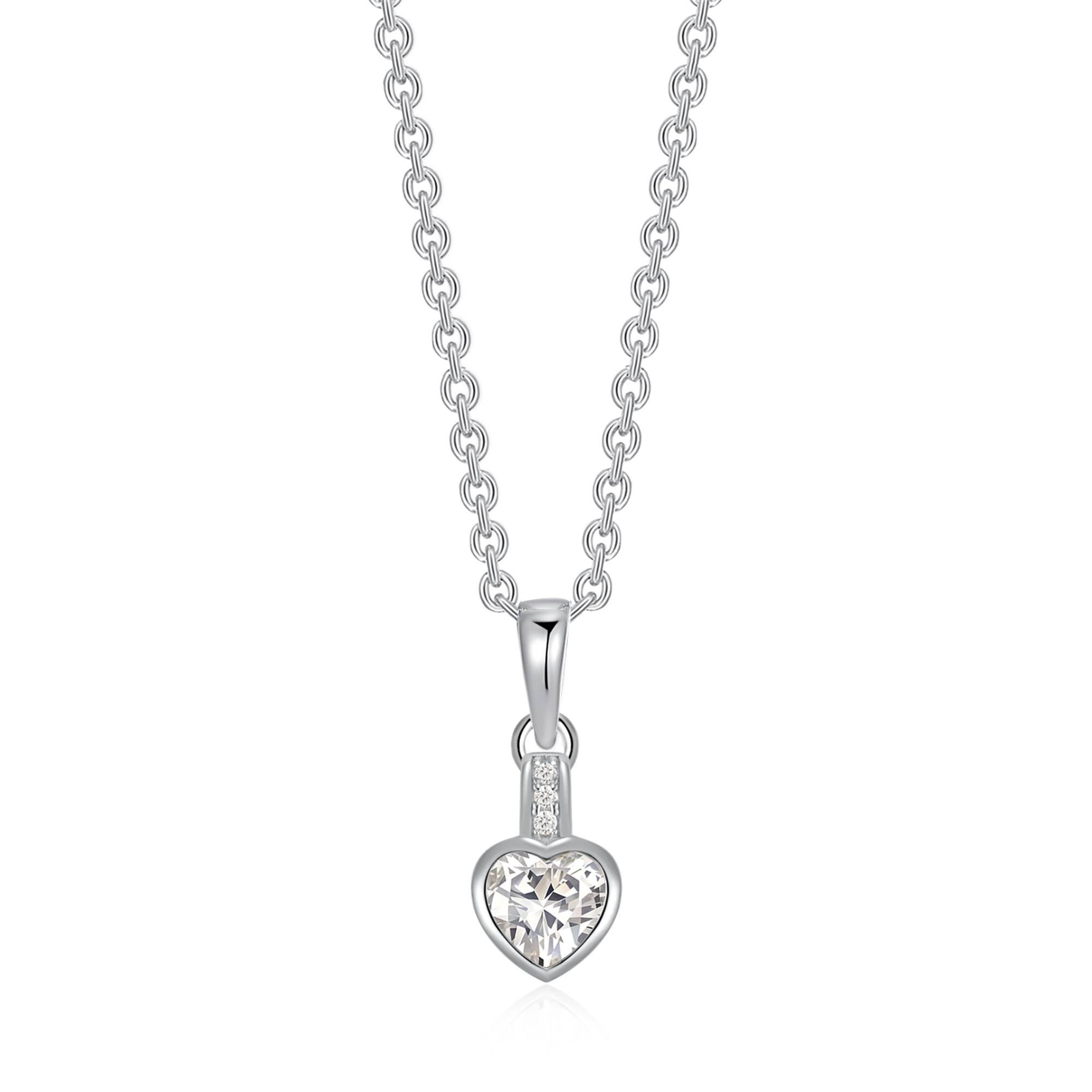 Sølv halskæde rhodineret hjerte med syntetiske cubic zirconia.