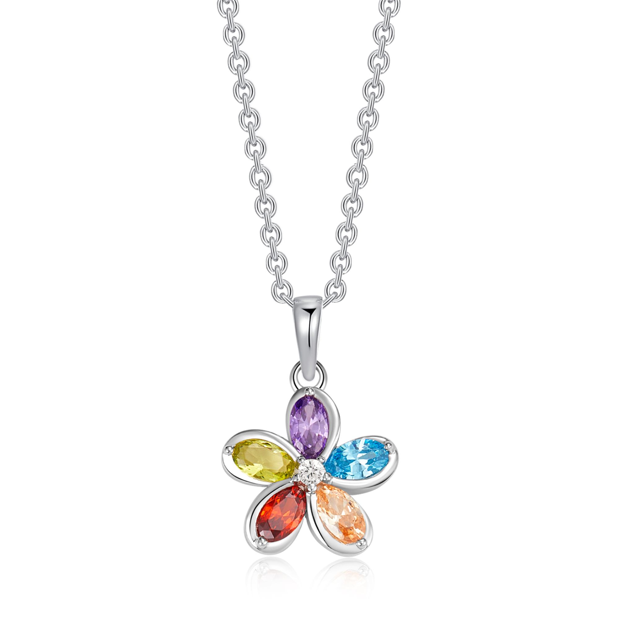 Sølv halskæde rhodineret blomst med ametyst, blå topas, Citrin, granat, peridot og syntetisk cubic zirconia.