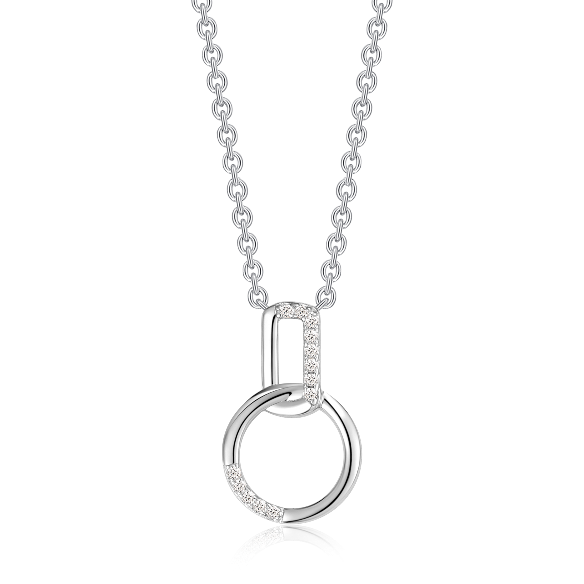 Sølv halskæde rhodineret cirkel med syntetiske cubic zirconia.