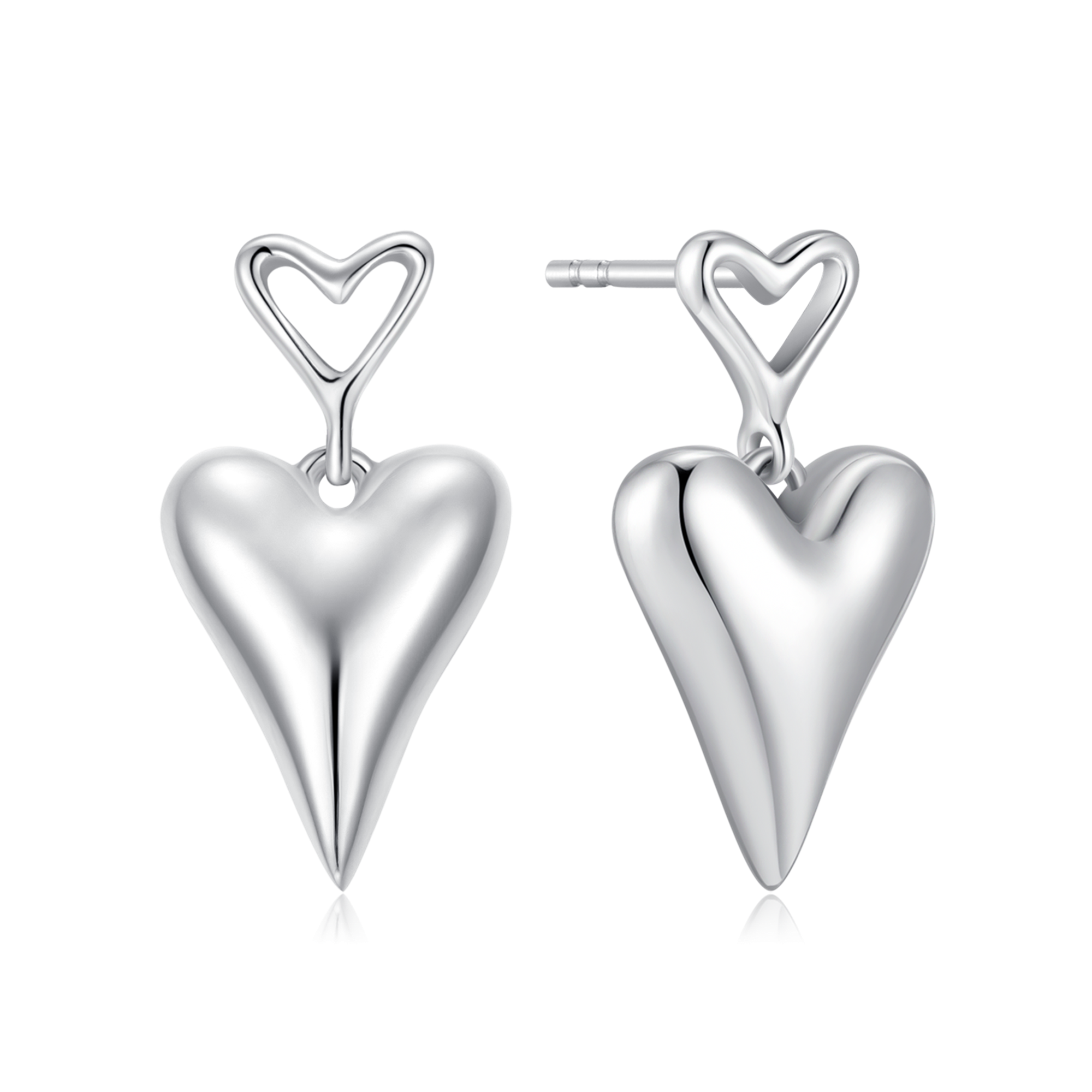 Sølv ørehænger rhodineret dobbelt hjerte hvor den stor er fyldt hjerte. bagside er der huller med hjerte.