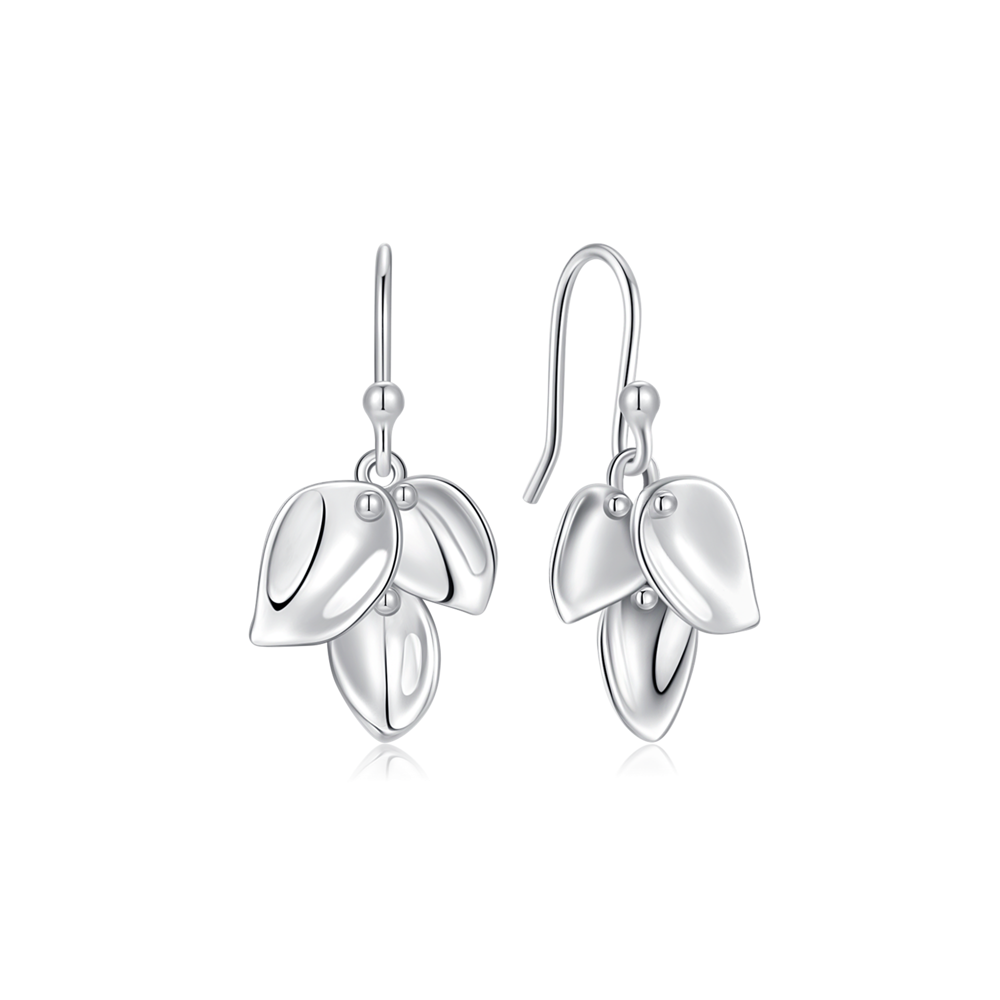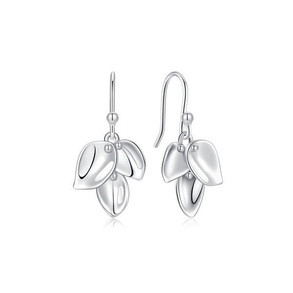 Sølv ørehænger rhodineret 3 blade med knopper på toppen.