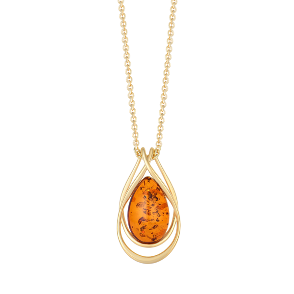 Sølvforgyldt halskæde dobbelt dråbe med oval rav.