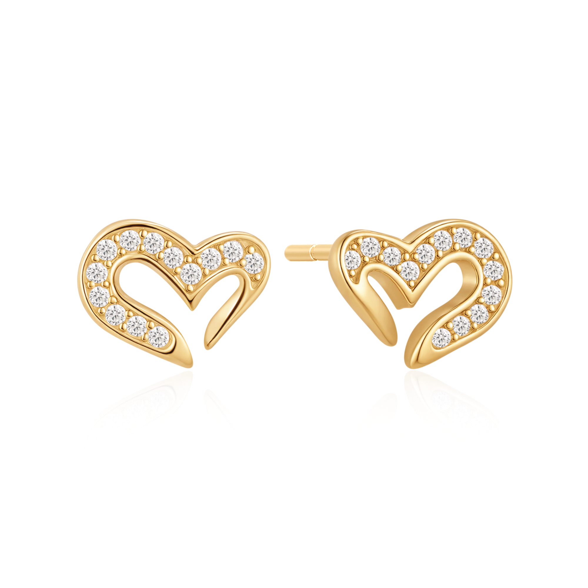 Støvring Designs sølvforgyldte ørestikker har et unikt skævt hjerte-design, der tilfører et moderne og charmerende præg. De glitrende cubic zirconia-sten langs kanten fanger lyset elegant og skaber et sofistikeret udtryk, der minder om diamanters skønhed, men til en mere overkommelig pris.