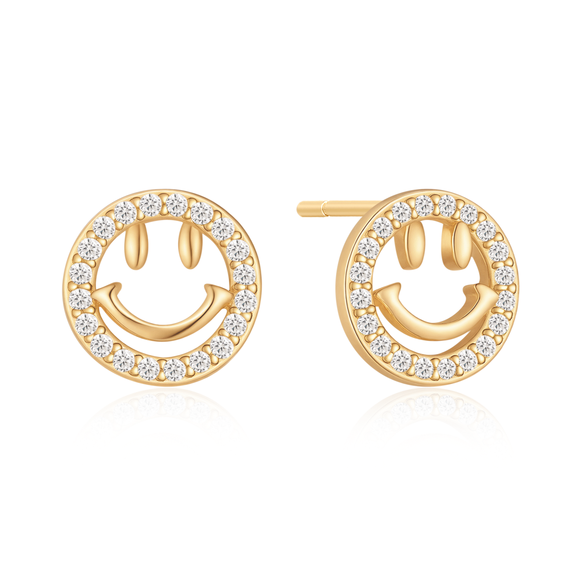Støvring Designs sølvforgyldte ørestikker kombinerer et unikt smiley-motiv med elegant glamour. Den gyldne finish og de skinnende cubic zirconia-sten skaber et sofistikeret udtryk, der passer glimrende til både festlige lejligheder og hverdagens outfit. Det legende design tilføjer personlighed og spreder positiv energi.