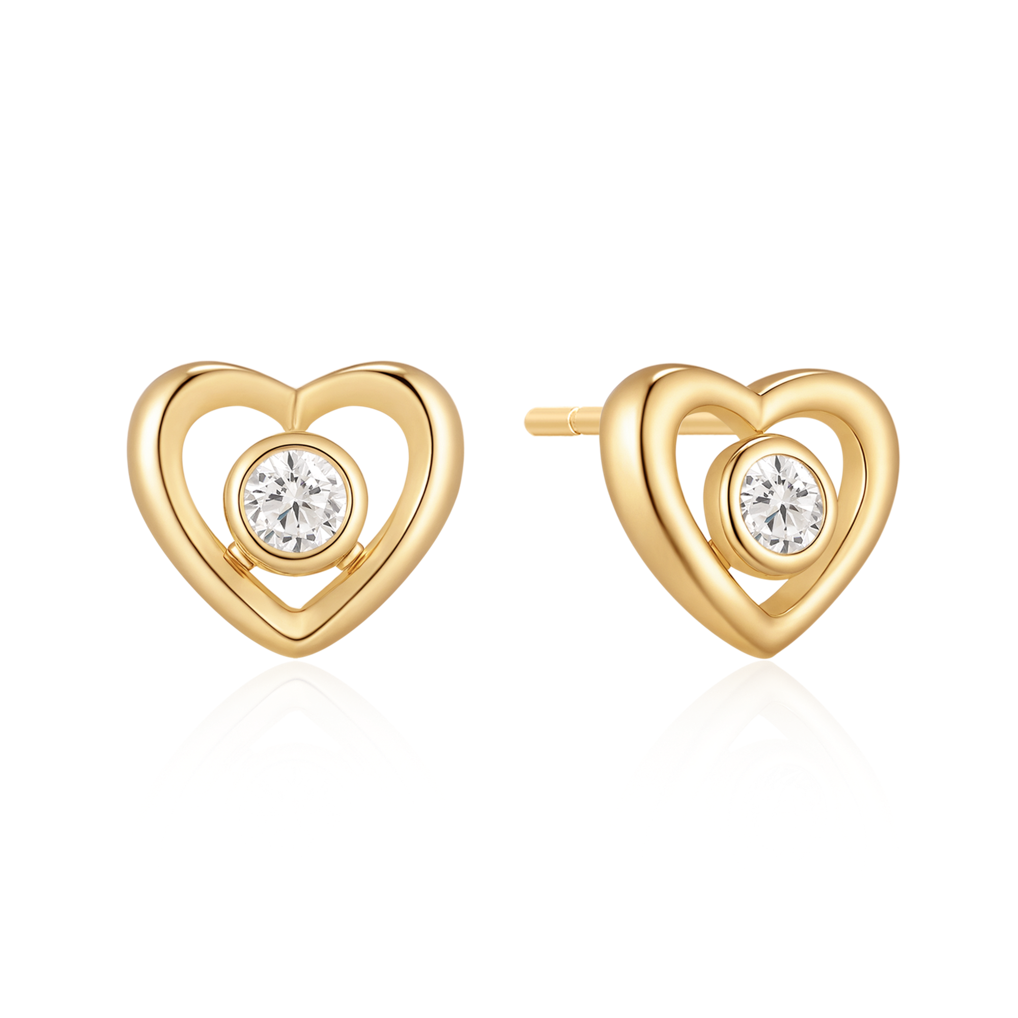 Sølvforgyldt ørestikker hjerte med syntetiske cubic zirconia.