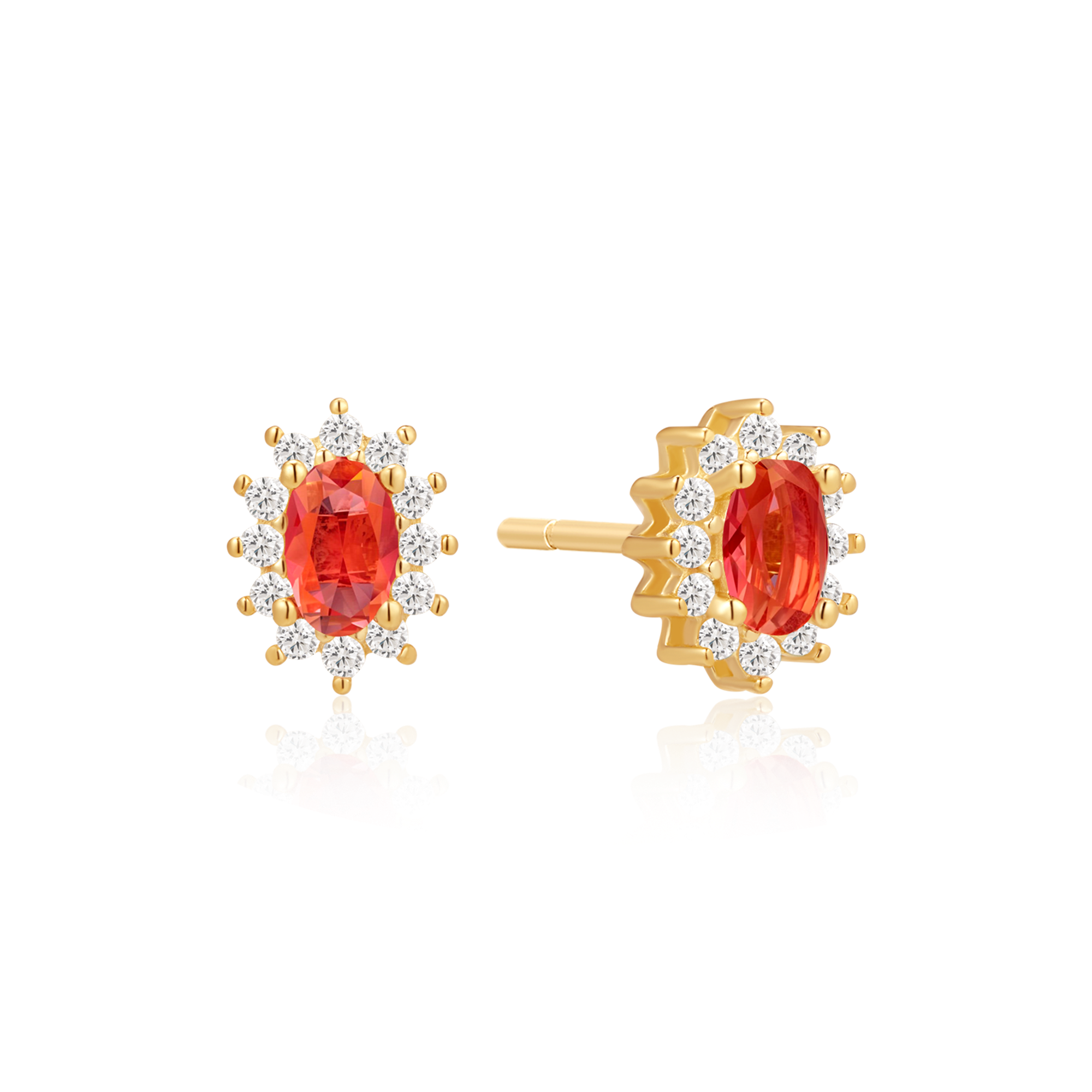 Sølvforgyldt ørestikker oval med syntetiske cubic zirconia og rubin..