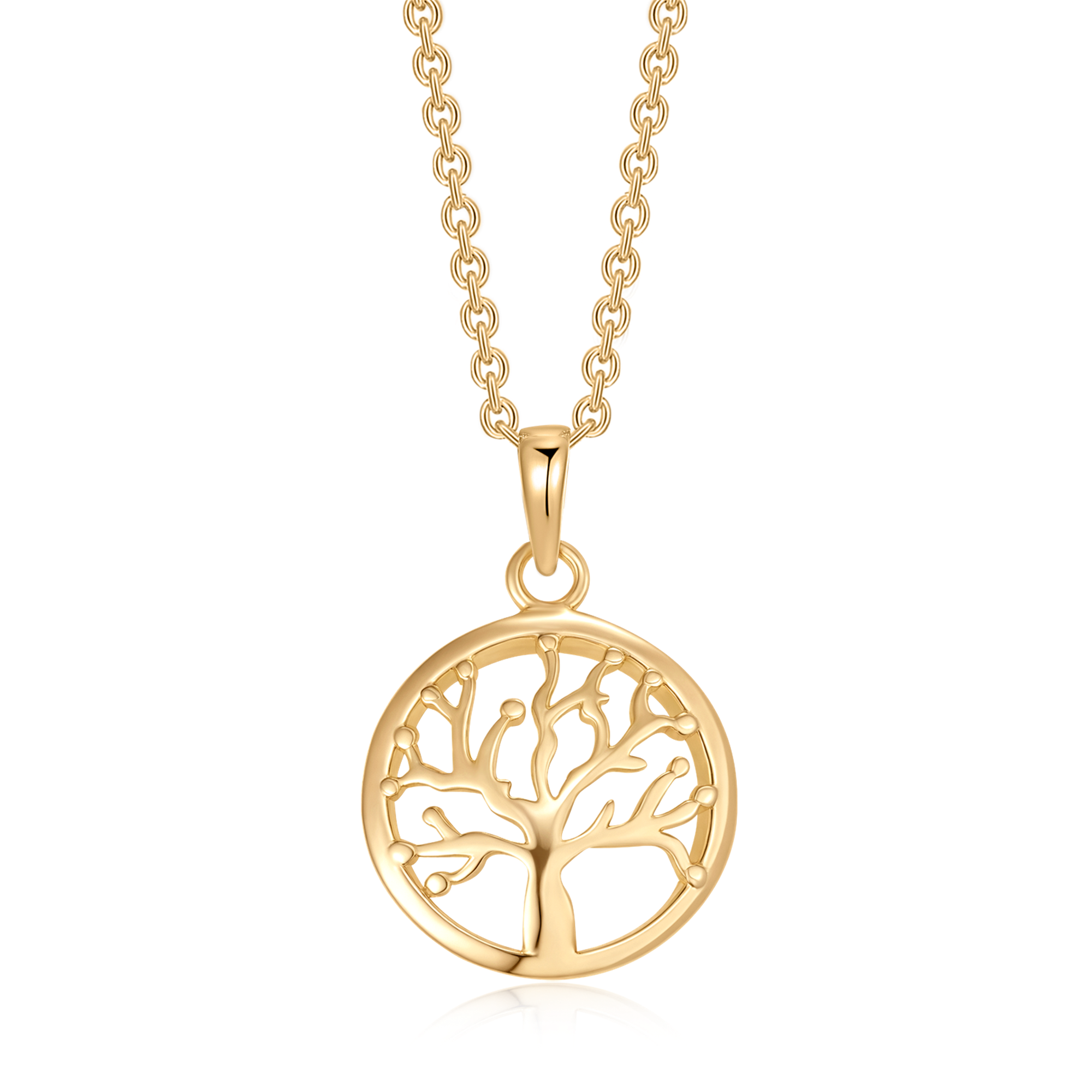 Sølvforgyldt halskæde livets træ i cirkel med syntetiske cubic zirconia.