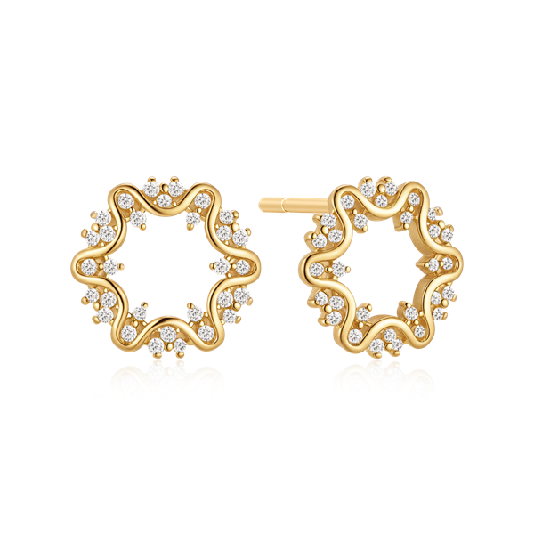 Sølvforgyldt ørestikker flettet cirkel med stjerne og syntetiske cubic zirconia.