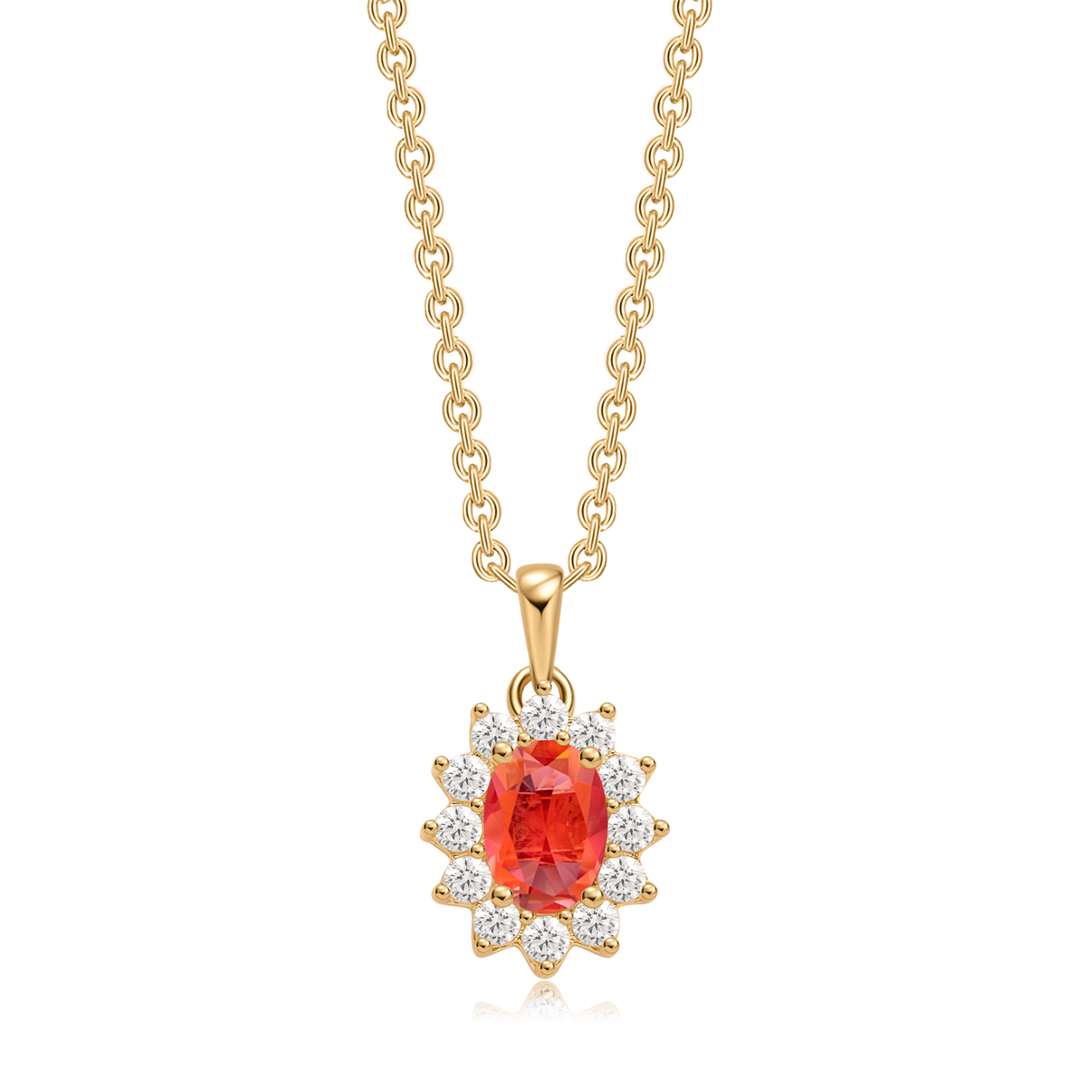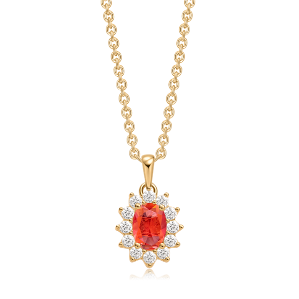 Sølvforgyldt halskæde oval med syntetisk cubic zirconia og rubin.
