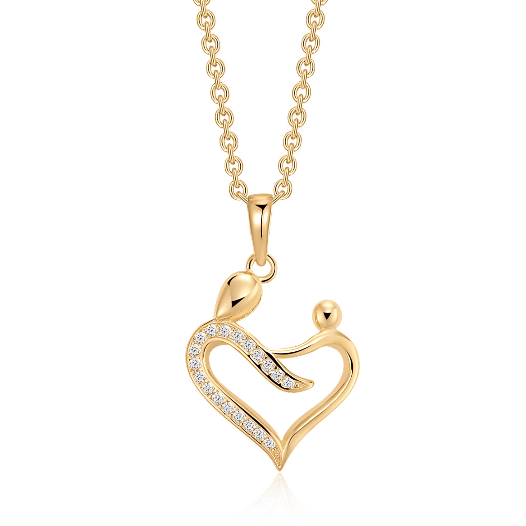 Sølvforgyldt halskæde hjerter med mor og barn med syntetiske cubic zirconia. "Mor og barn"