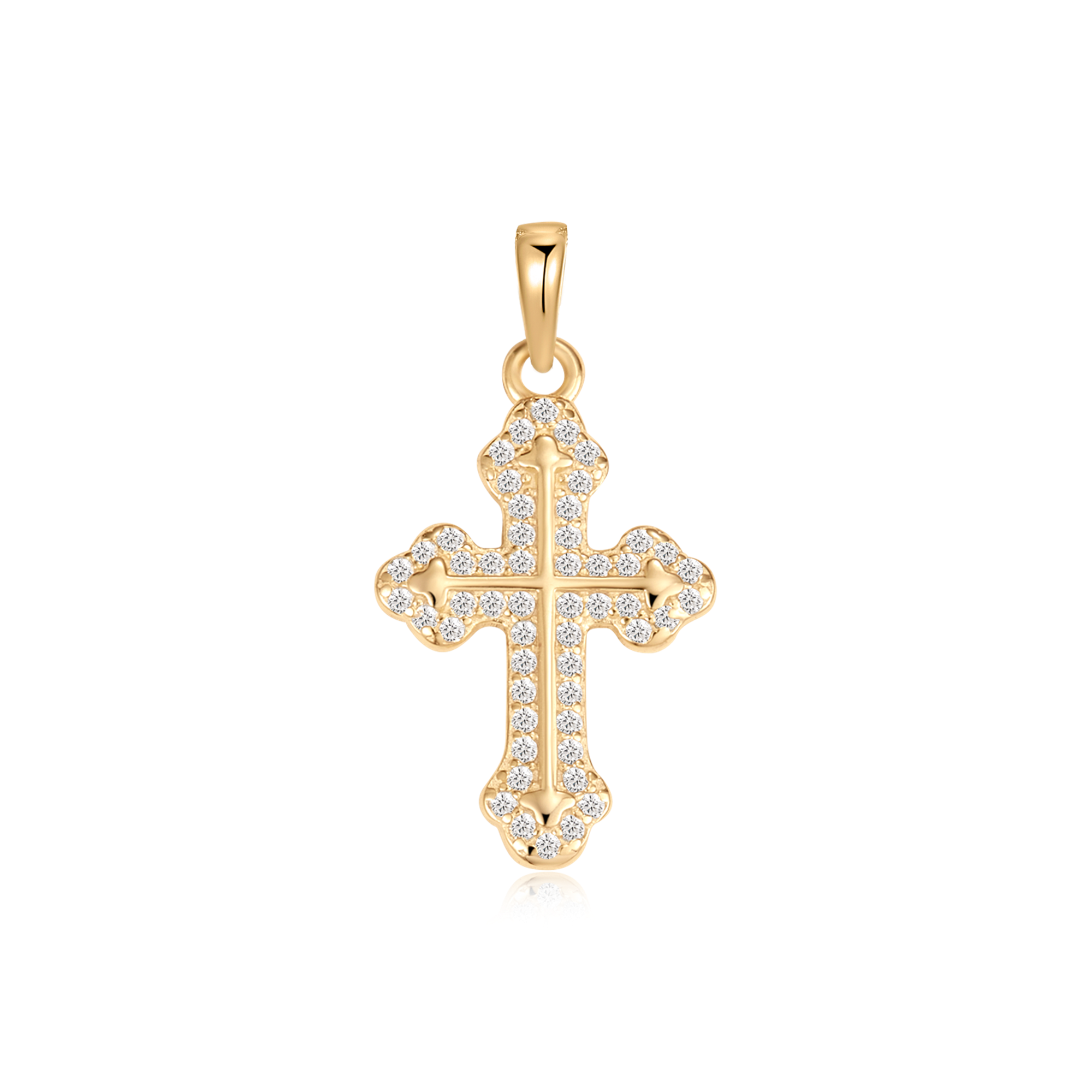 Sølvforgyldt vedhæng kors med syntetiske cubic zirconia.