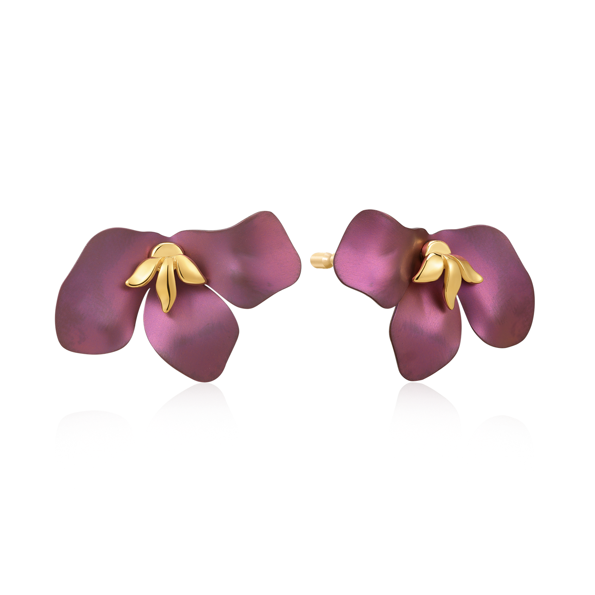 Sølvforgyldt ørestikker blomst i pink titanium., fra Støvring Design