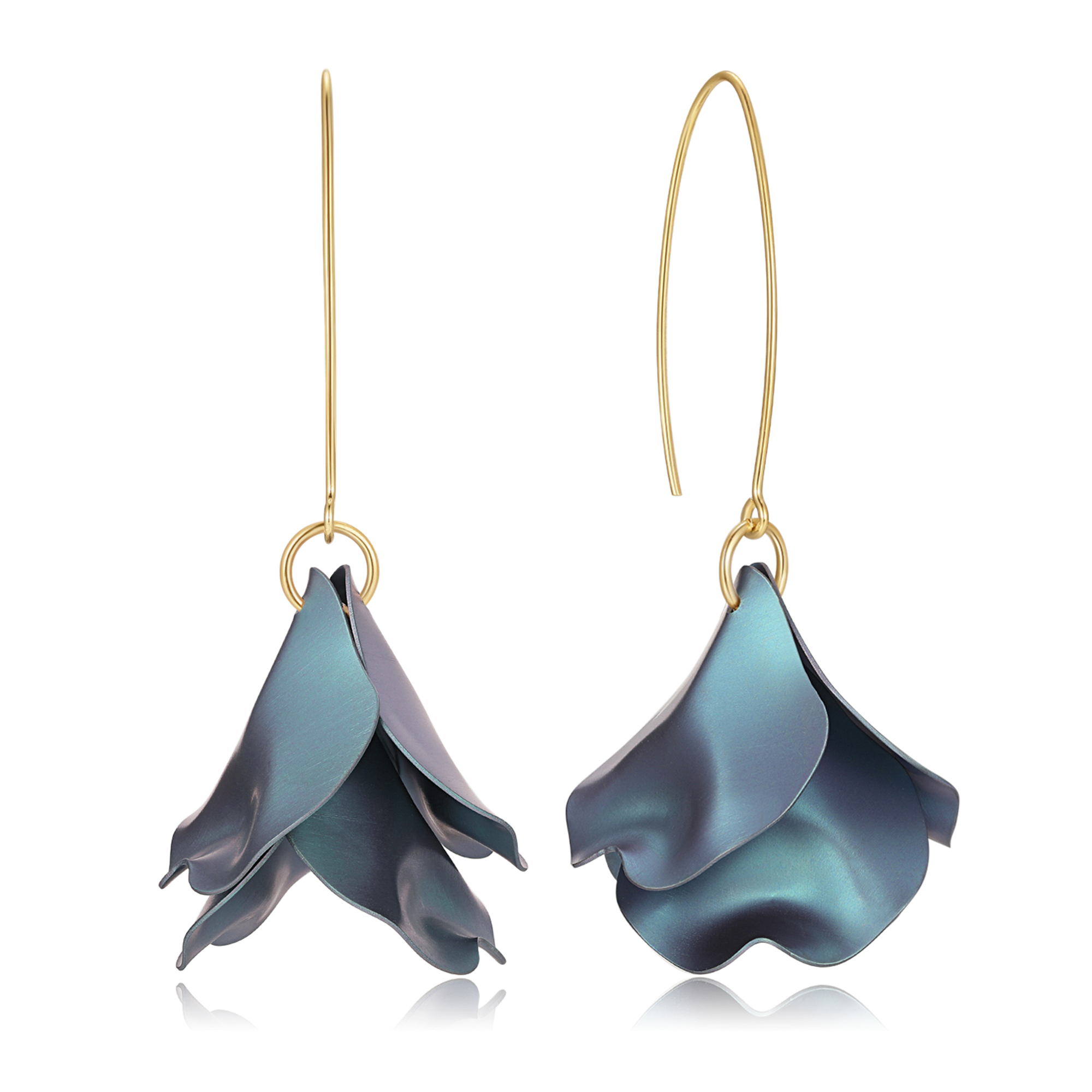 Sølvforgyldt ørehængere med krog blomst med blå jeans titanium., fra Støvring Design
