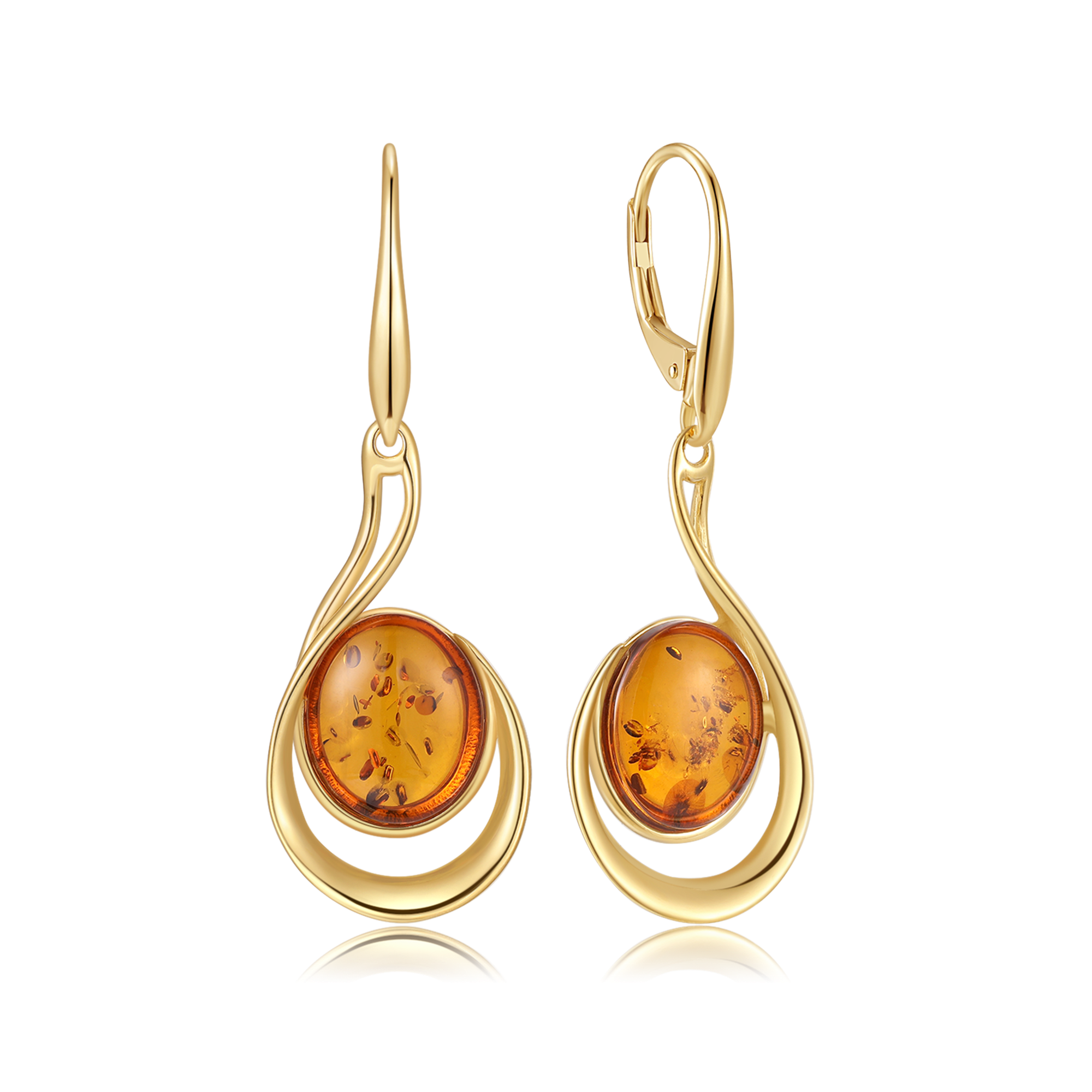 Sølvforgyldt ørehængere rav i ring med ring omkring., fra Støvring Design