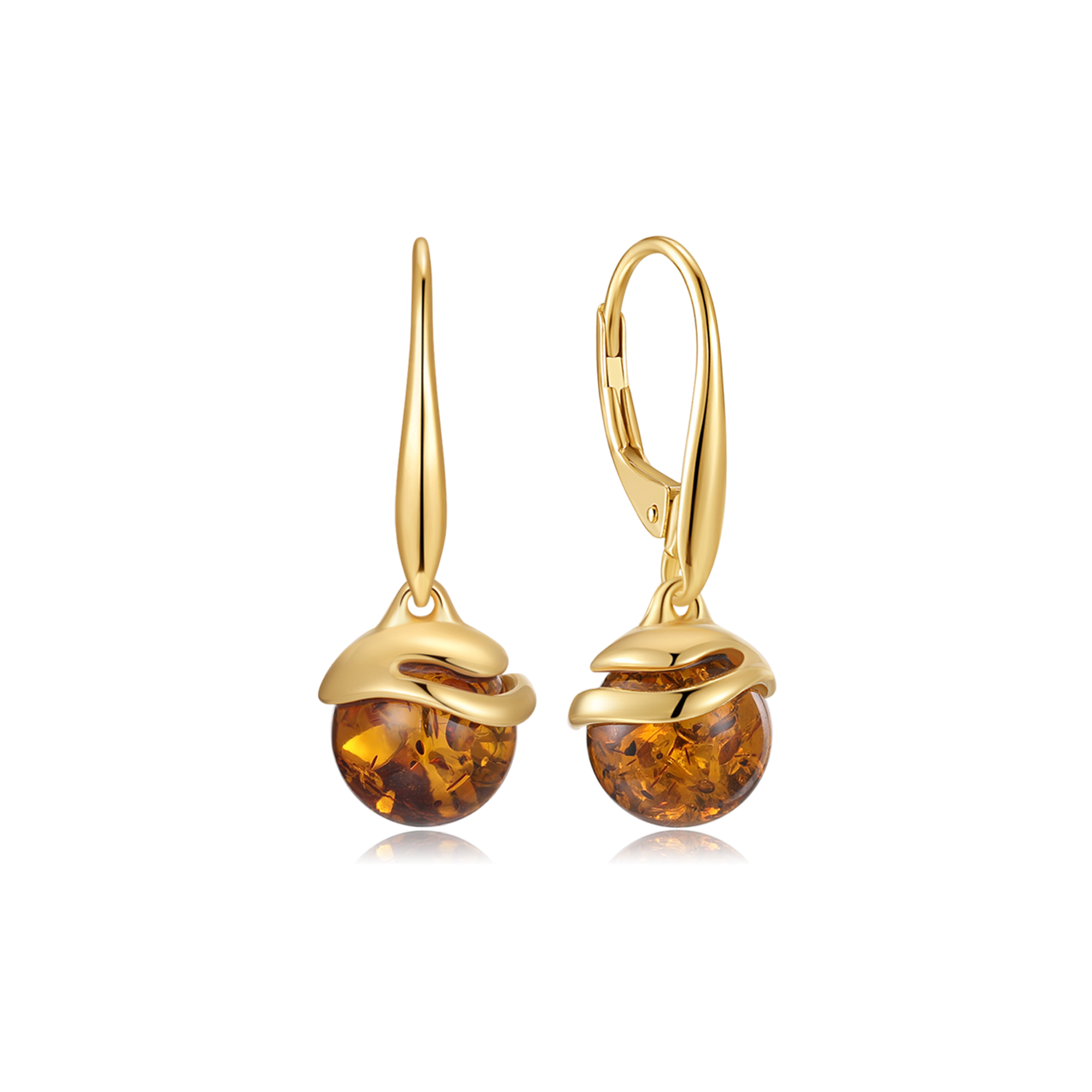 Sølvforgyldt ørehængere rund kugle i rav., fra Støvring Design