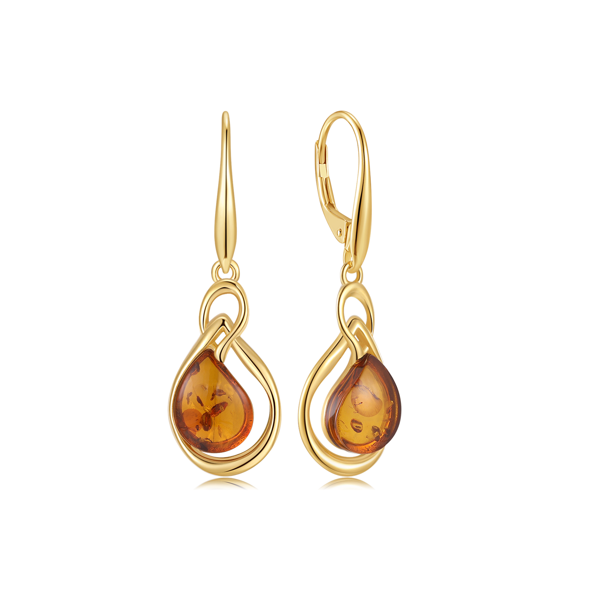 Sølvforgyldt ørehængere rav i dråbe form i ring rund om., fra Støvring Design