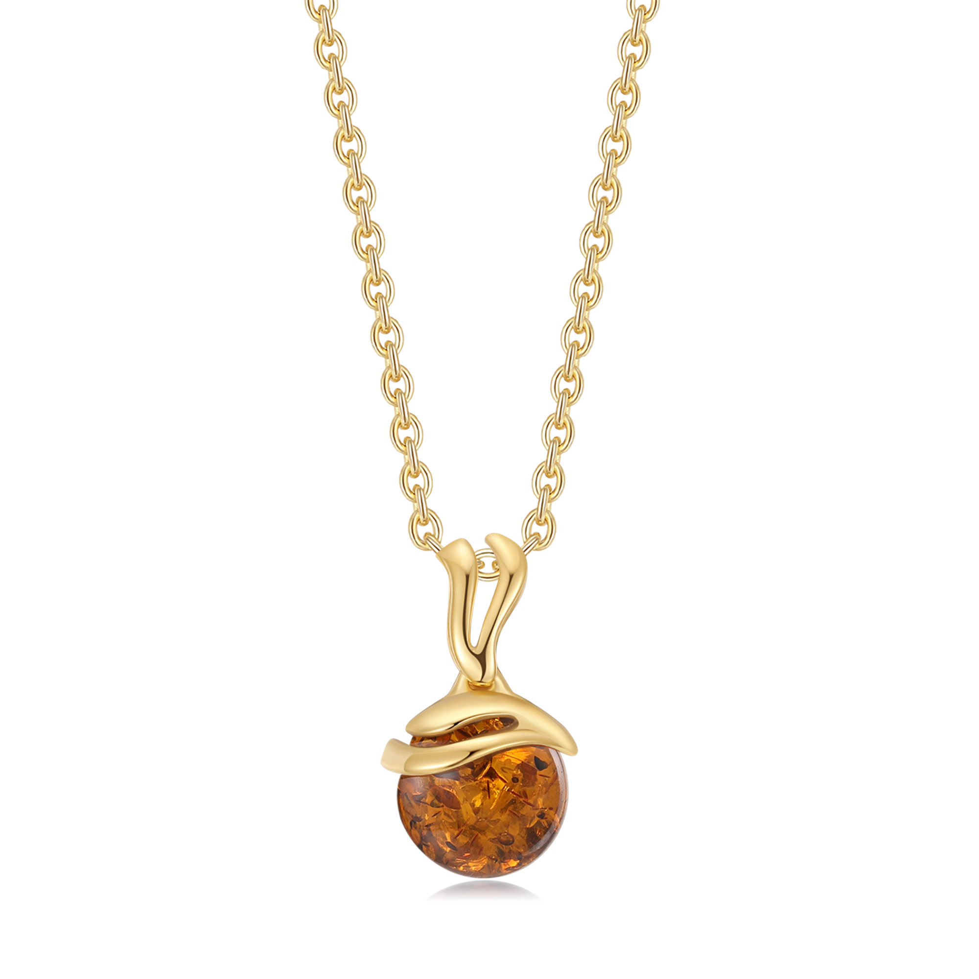 Sølvforgyldt vedhæng rav i rund kugle., fra Støvring Design