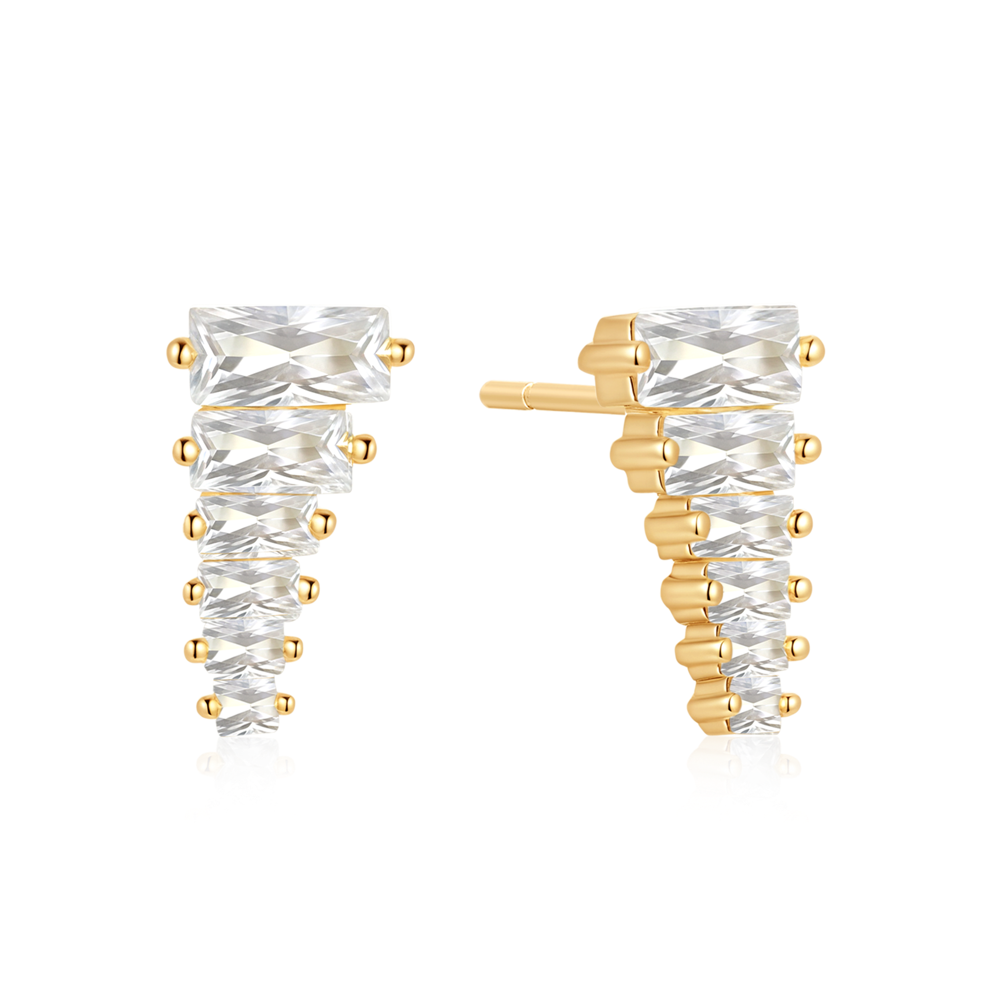 Sølvforgyldt ørestikker aflang trekant med 6 forskellige størrelse syntetiske cubic zirconia.