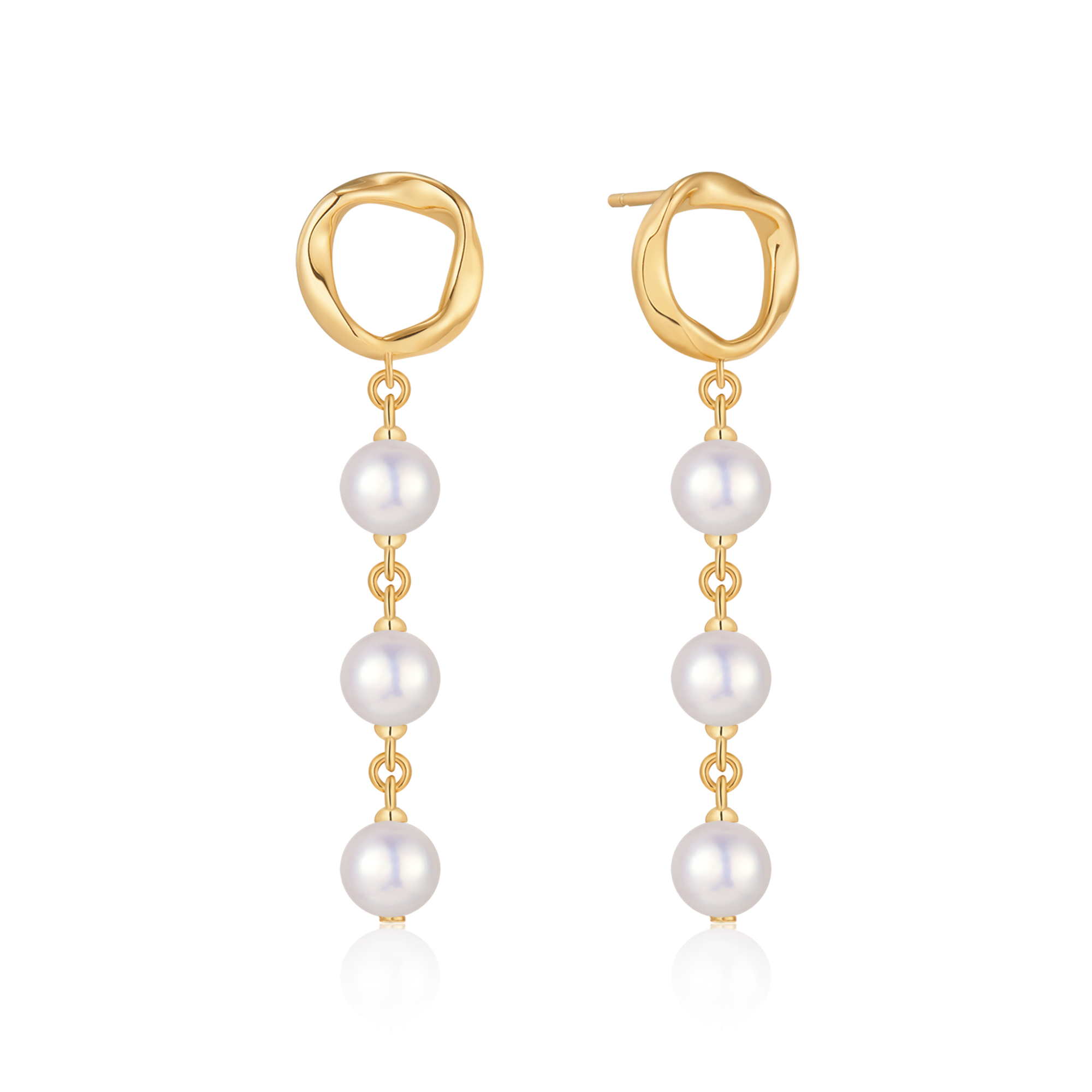 Sølvforgyldt ørehænger cirkel med forskellige størrelse ferskvandsperle.
