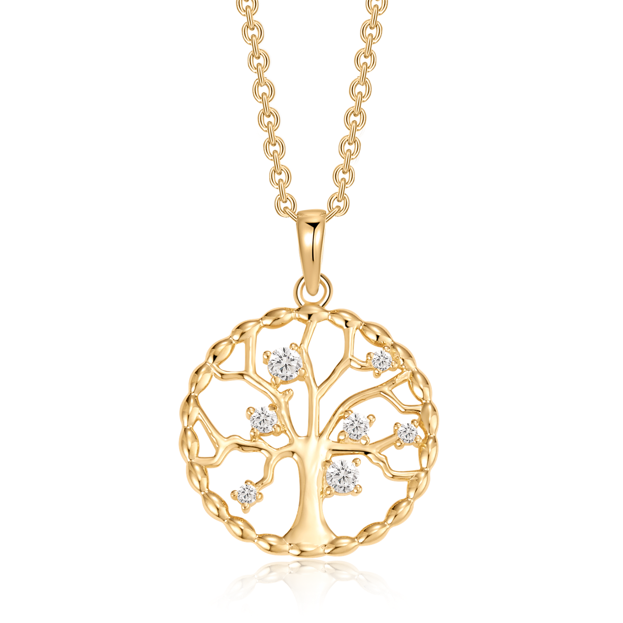 Sølvforgyldt halskæde livet træ i cirkel med syntetiske cubic zirconia.