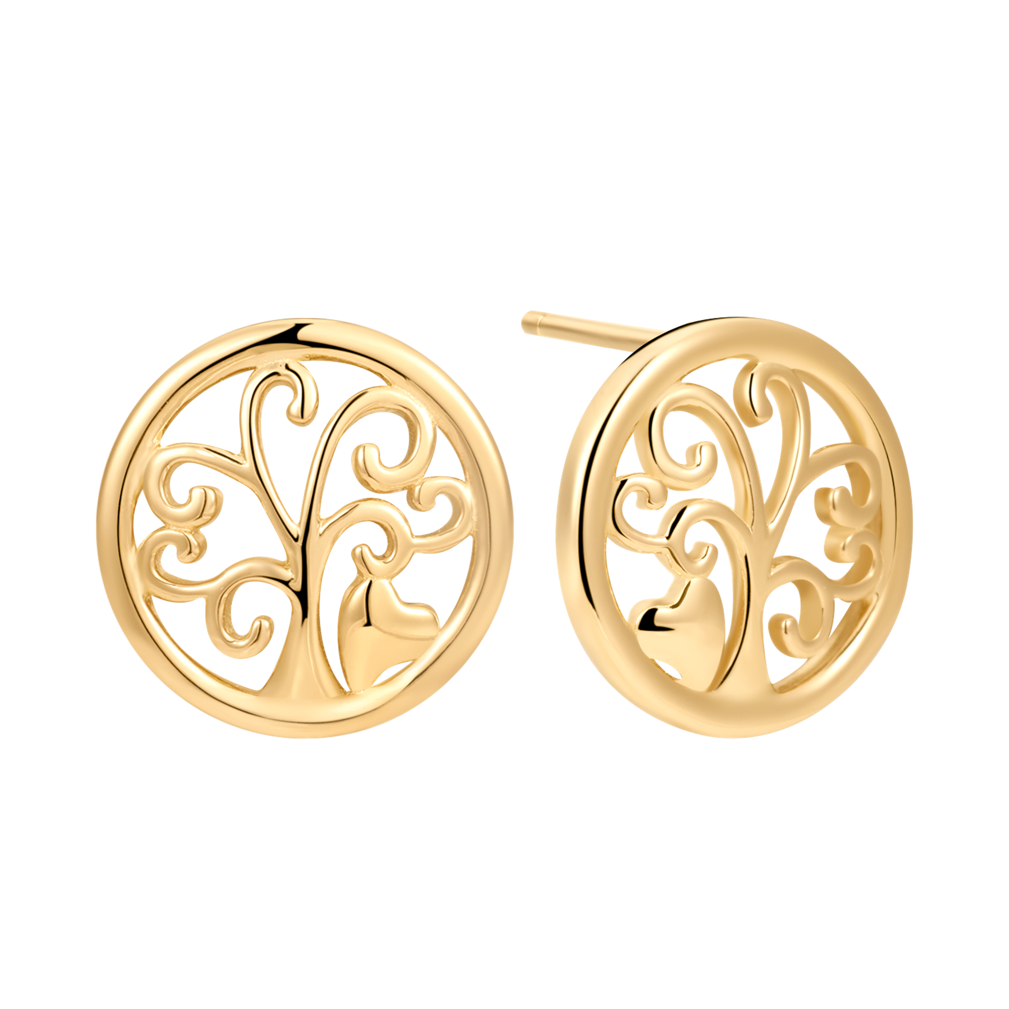 Sølvforgyldt ørestikker cirkel med livets træ og hjerte.
