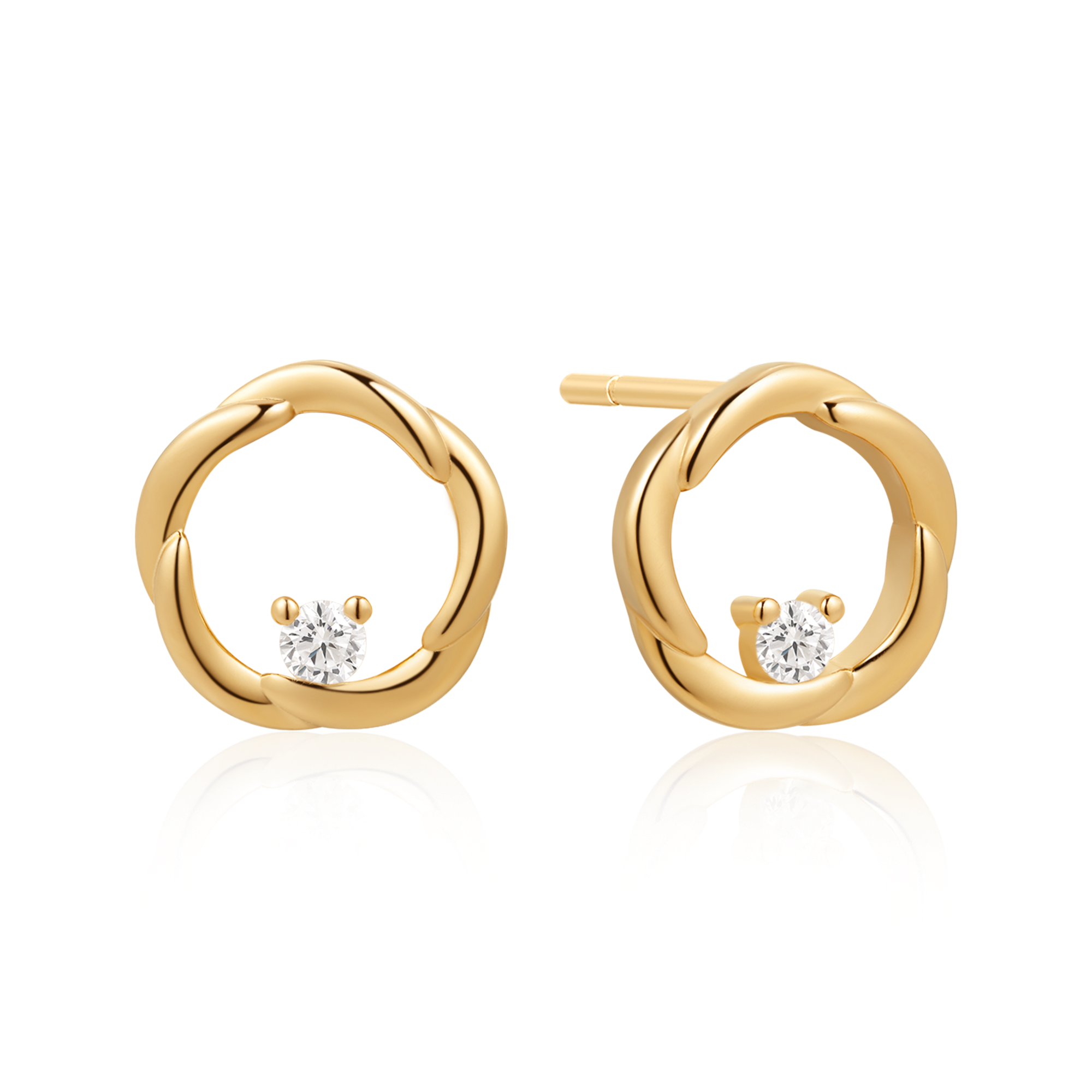 Sølvforgyldt ørestikker flettet cirkel med syntetisk cubic zirconia.