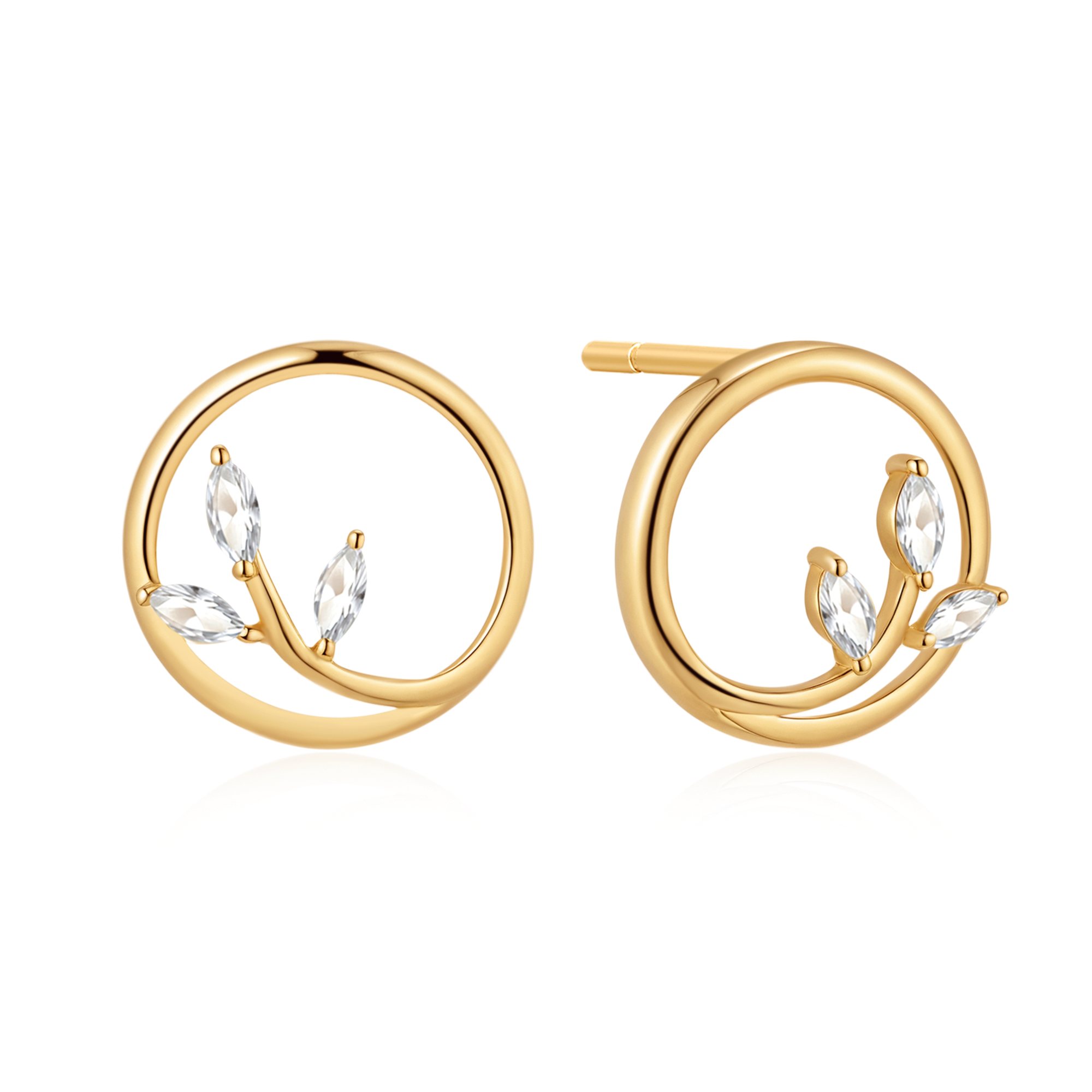 Sølvforgyldt ørestikker flettet cirkel med perlemor og gren med syntetisk cubic zirconia.