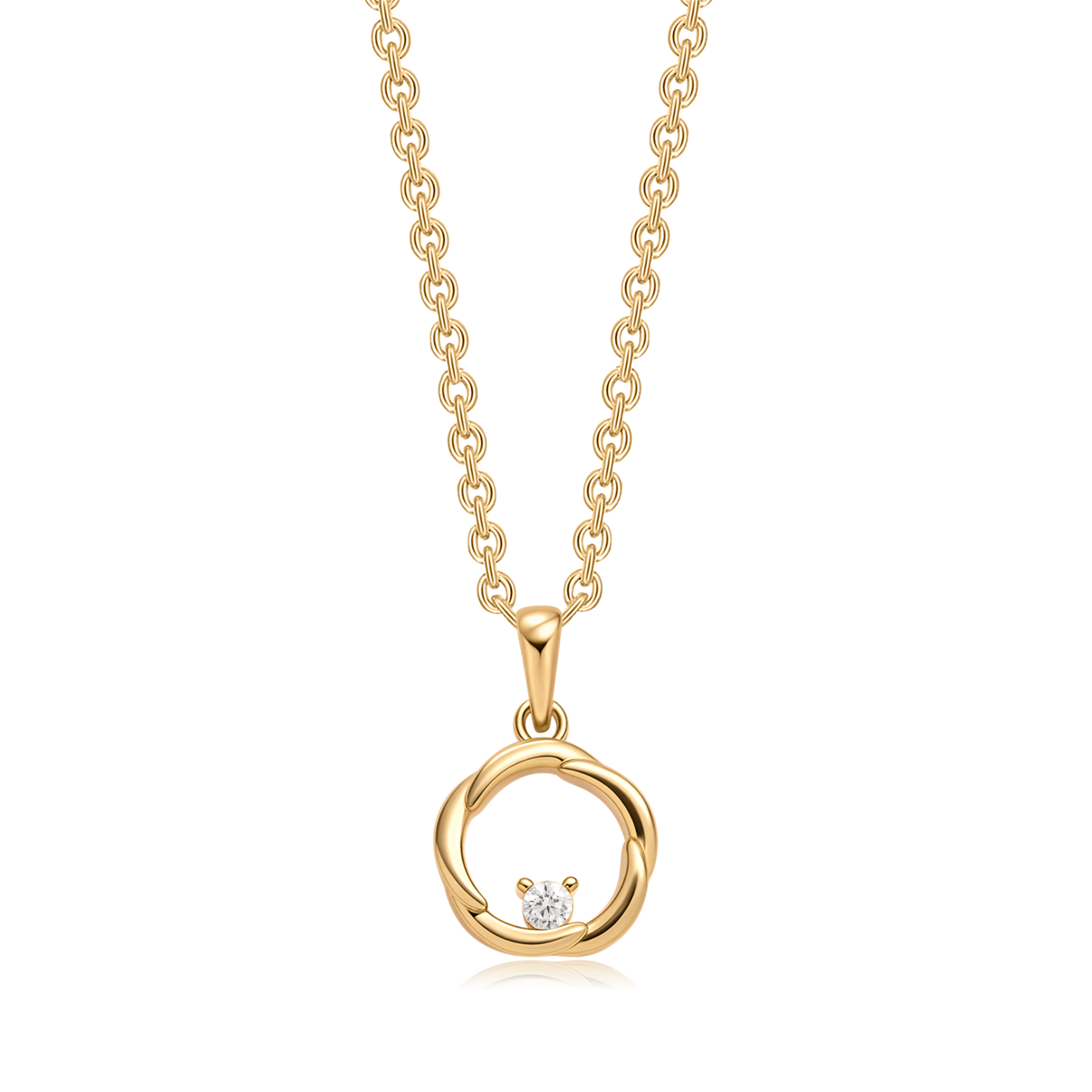 Sølvforgyldt halskæde flettet cirkel med syntetisk cubic zirconia.