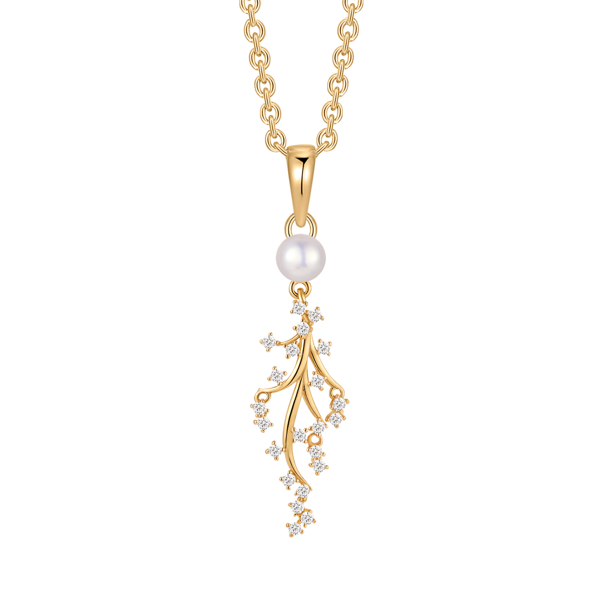 Sølvforgyldt halskæde erskvandsperle med gren og syntetiske cubic zirconia.