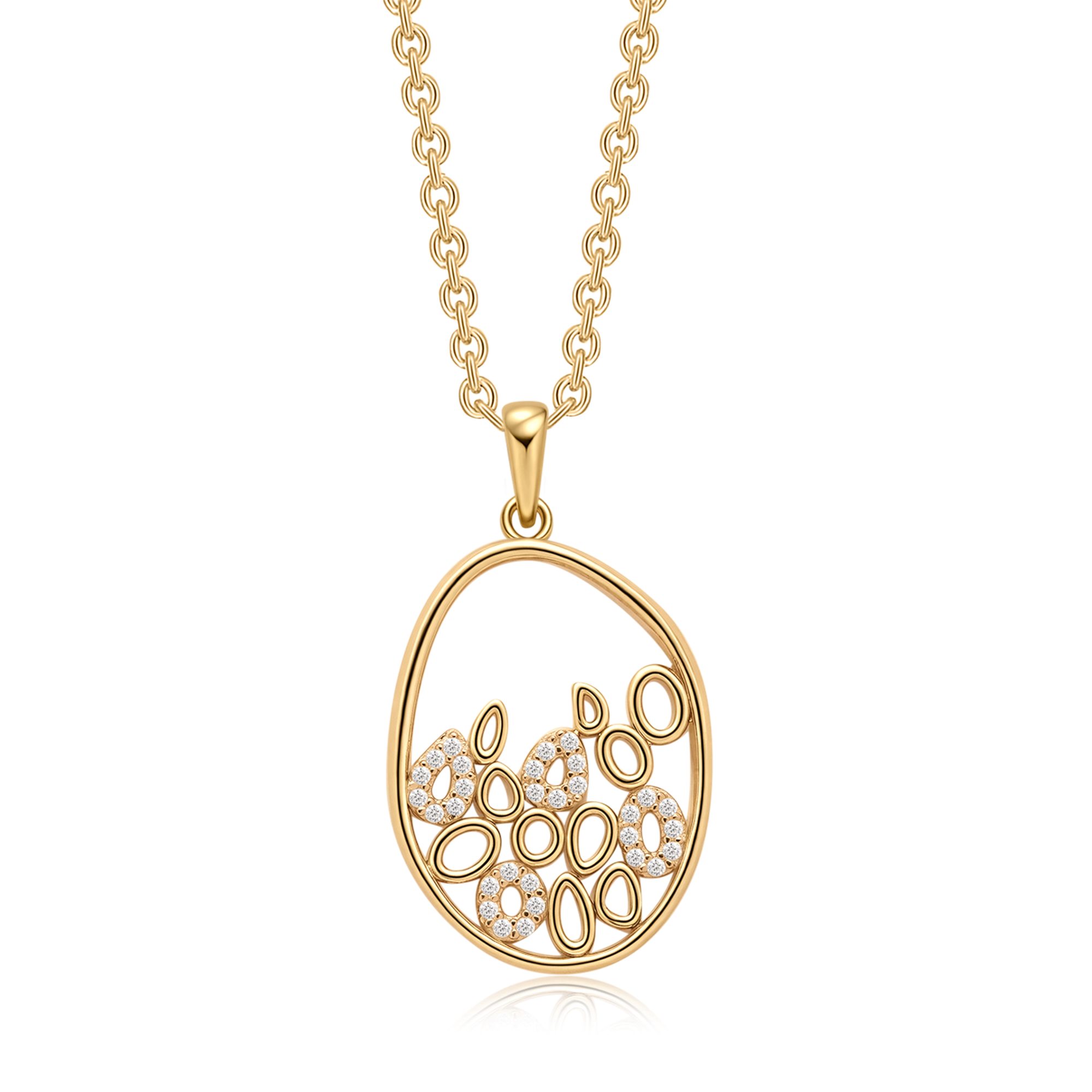 Sølvforgyldt halskæde oval med små oval og syntetiske cubic zirconia.