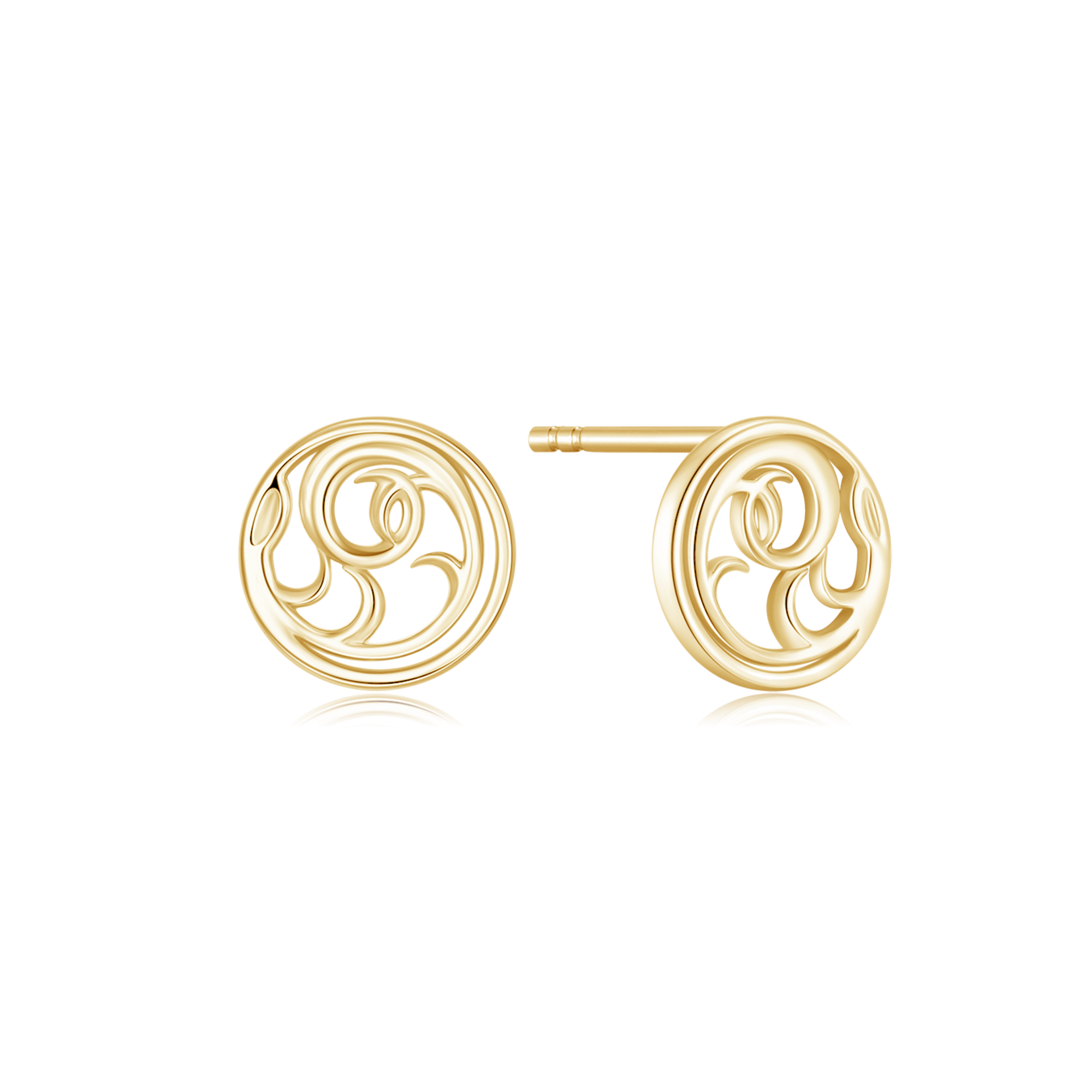 Sølvforgyldt ørestikker cirkel med mønster.